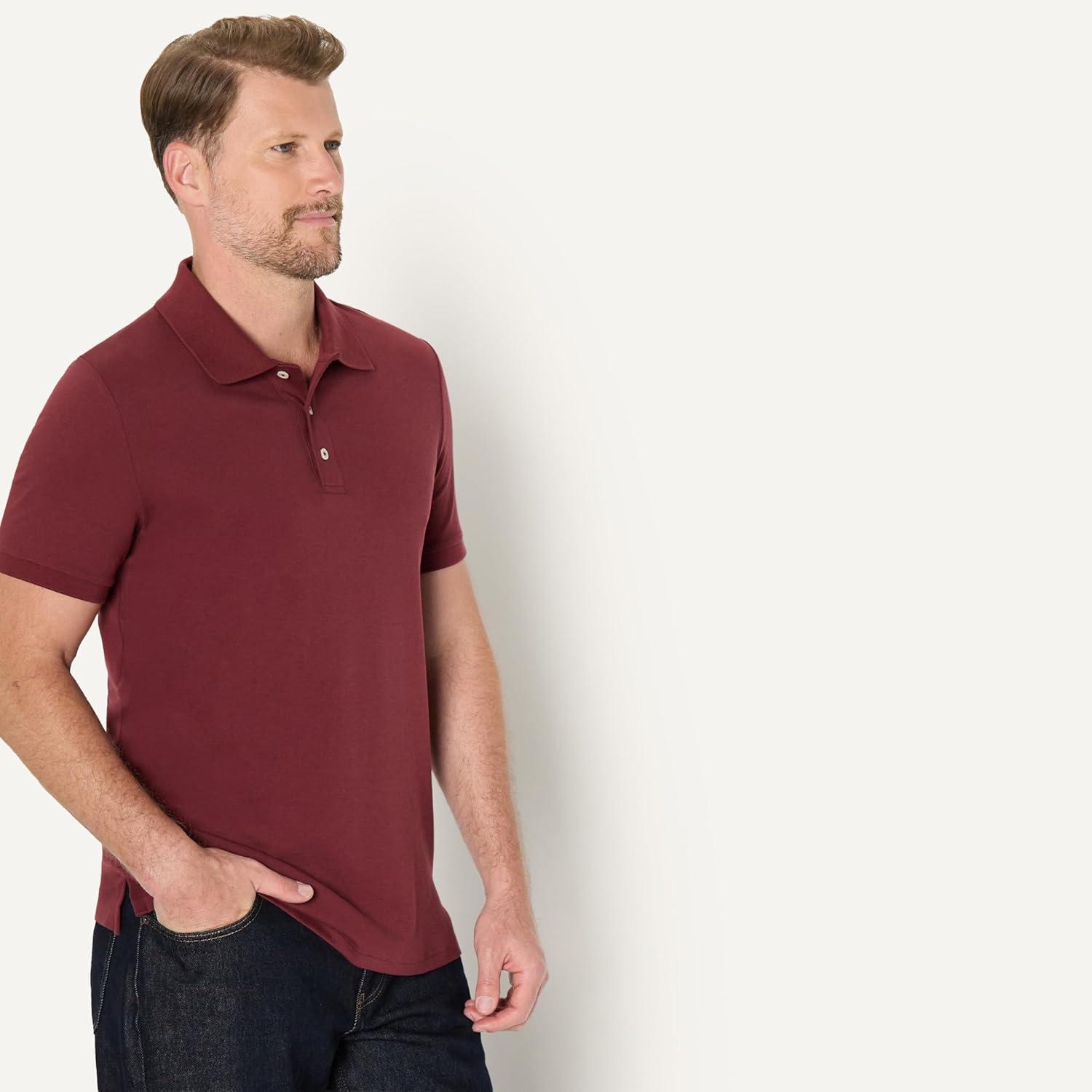 Amazon Essentials Men's Slim Fit Interlock Polo Shirt(Rich Burgundy)