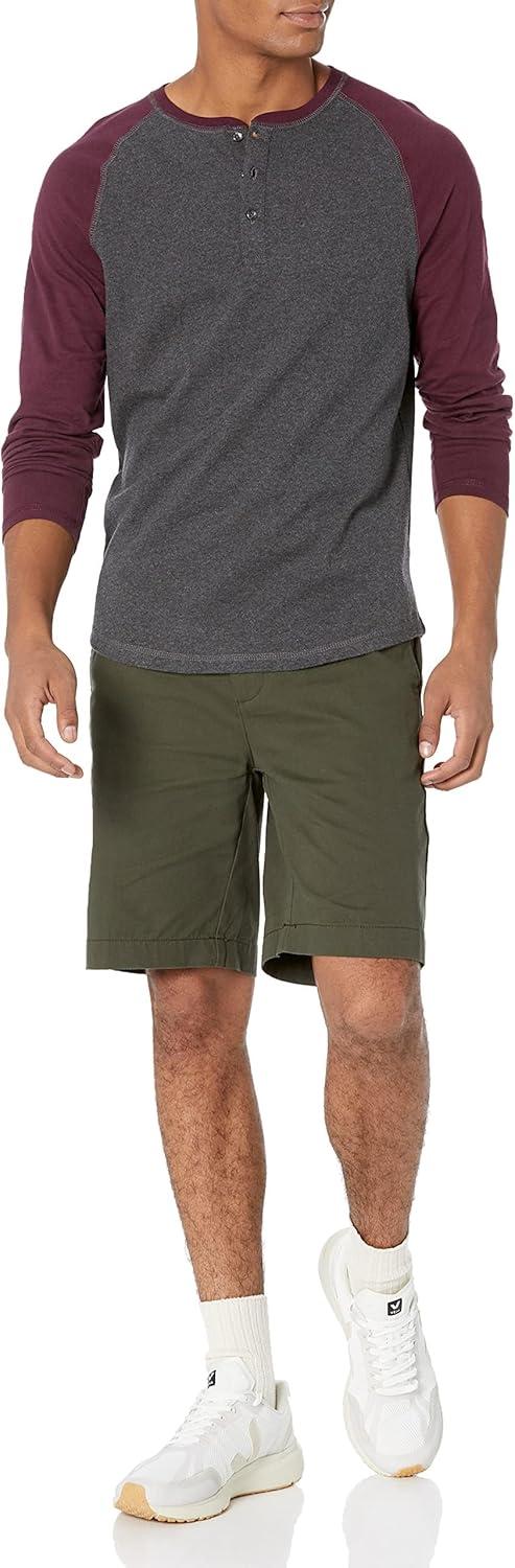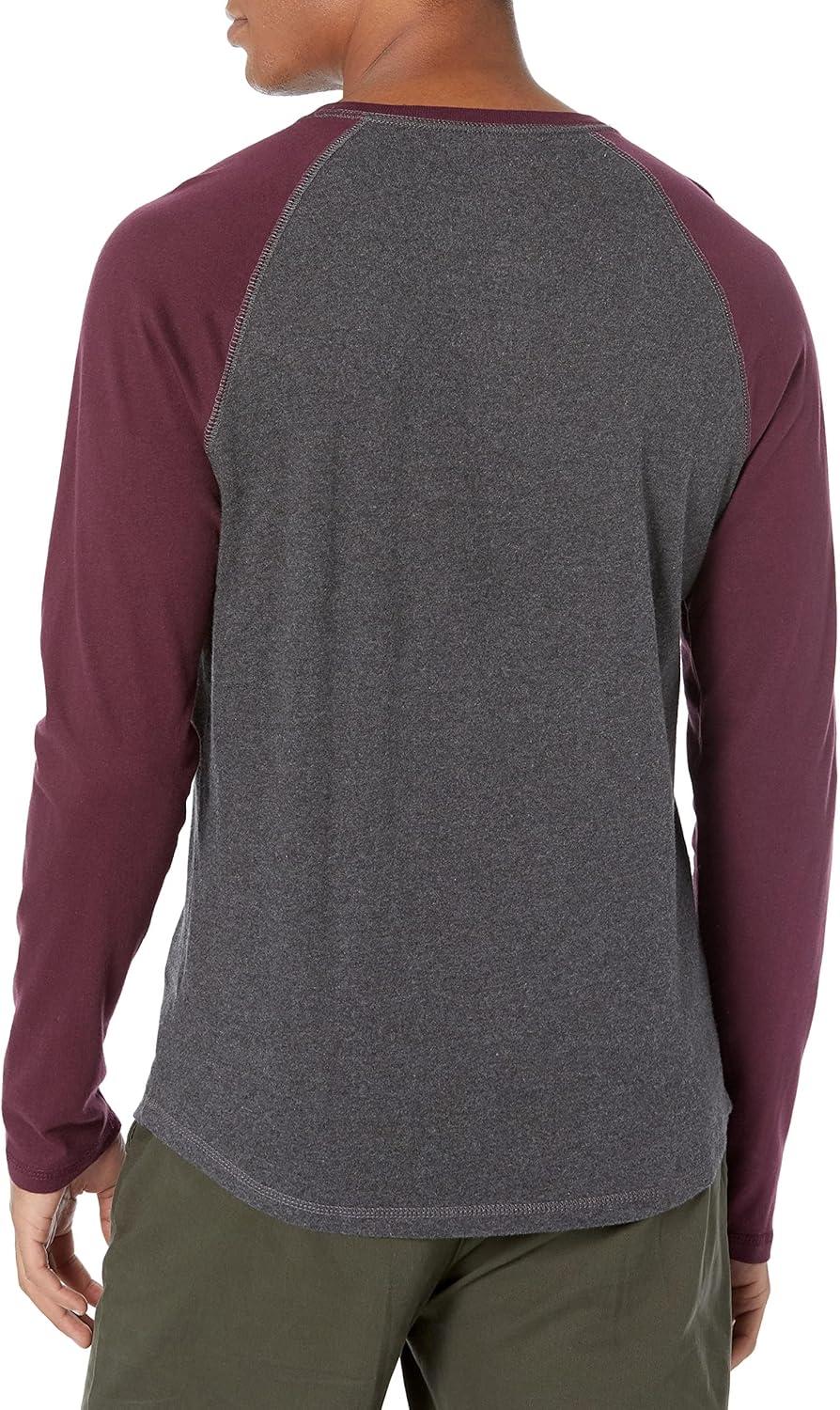 Amazon Essentials Men’s Slim-Fit Long-Sleeve Henley Shirt(Charcoal Heather/Burgundy)