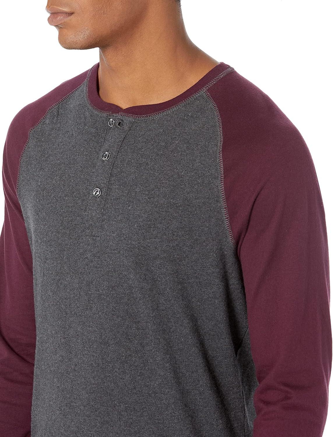 Amazon Essentials Men's Slim-Fit Long-Sleeve Henley Shirt(Charcoal Heather/Burgundy)
