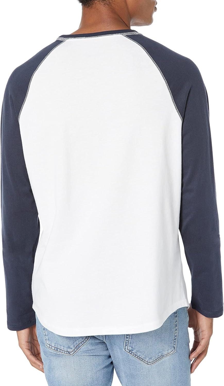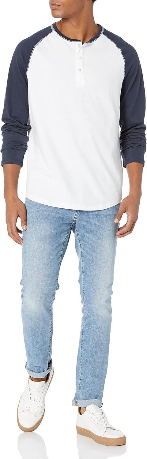 Amazon Essentials Men’s Slim-Fit Long-Sleeve Henley Shirt(Navy White)