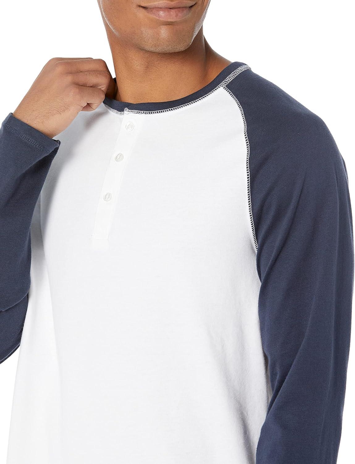 Amazon Essentials Men's Slim-Fit Long-Sleeve Henley Shirt(Navy White)