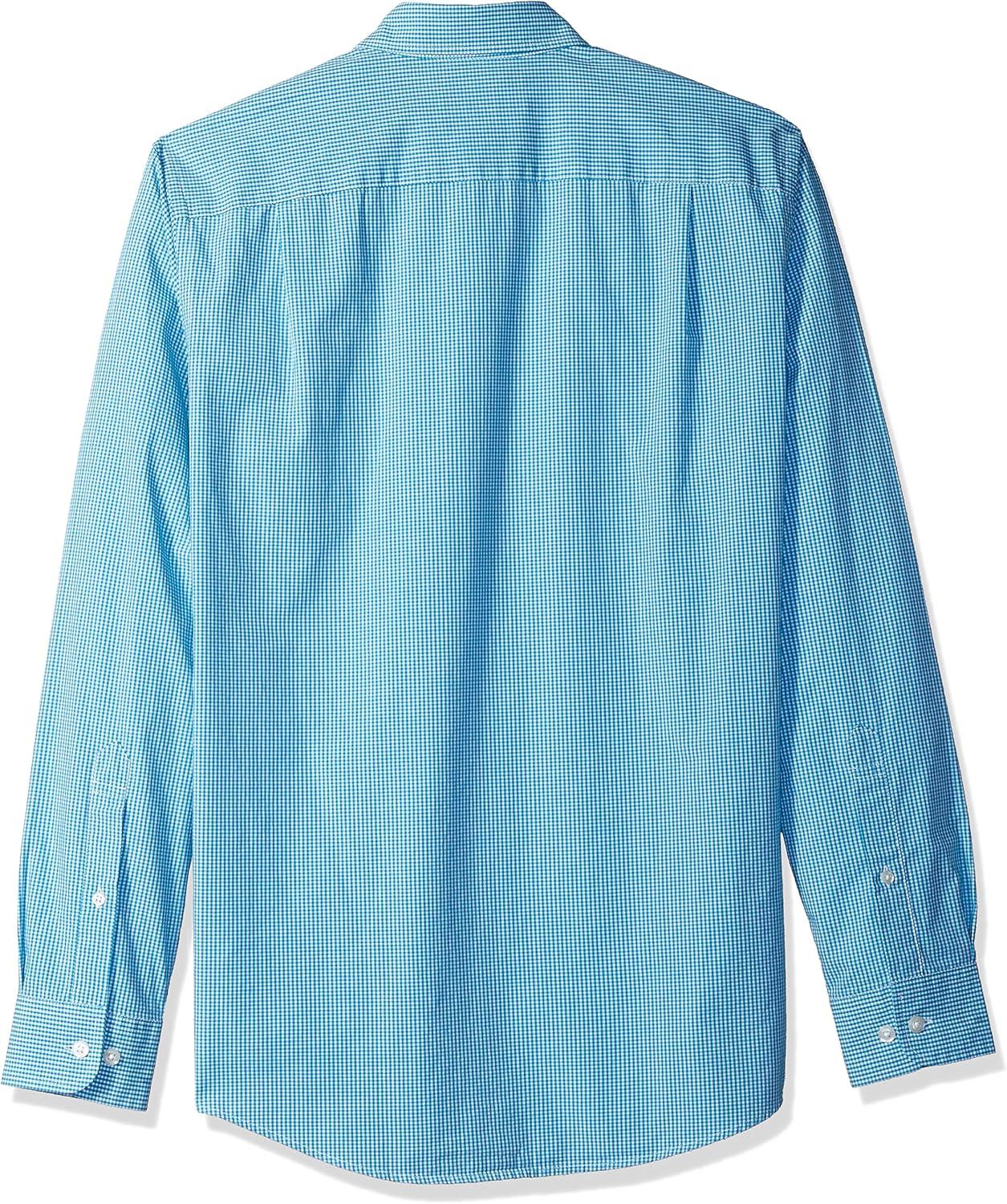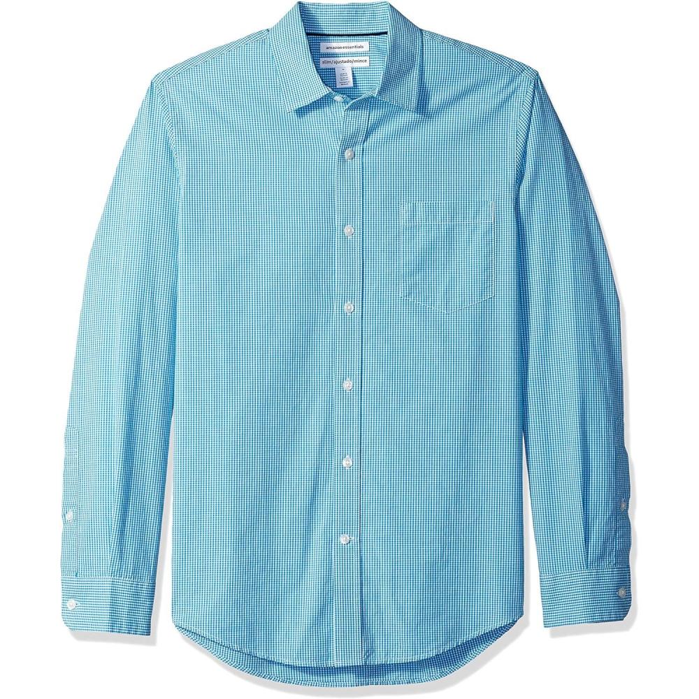 Amazon Essentials Men's Slim-Fit Long-Sleeve Poplin Shirt(Aqua Blue Gingham)