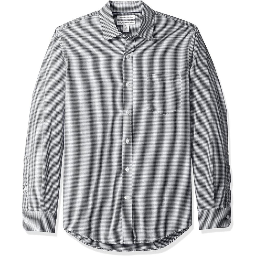 Amazon Essentials Men's Slim-Fit Long-Sleeve Poplin Shirt(Black Gingham)