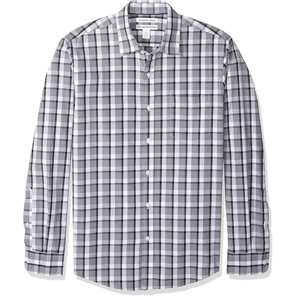 Amazon Essentials Men's Slim-Fit Long-Sleeve Poplin Shirt(Black Grey Plaid)