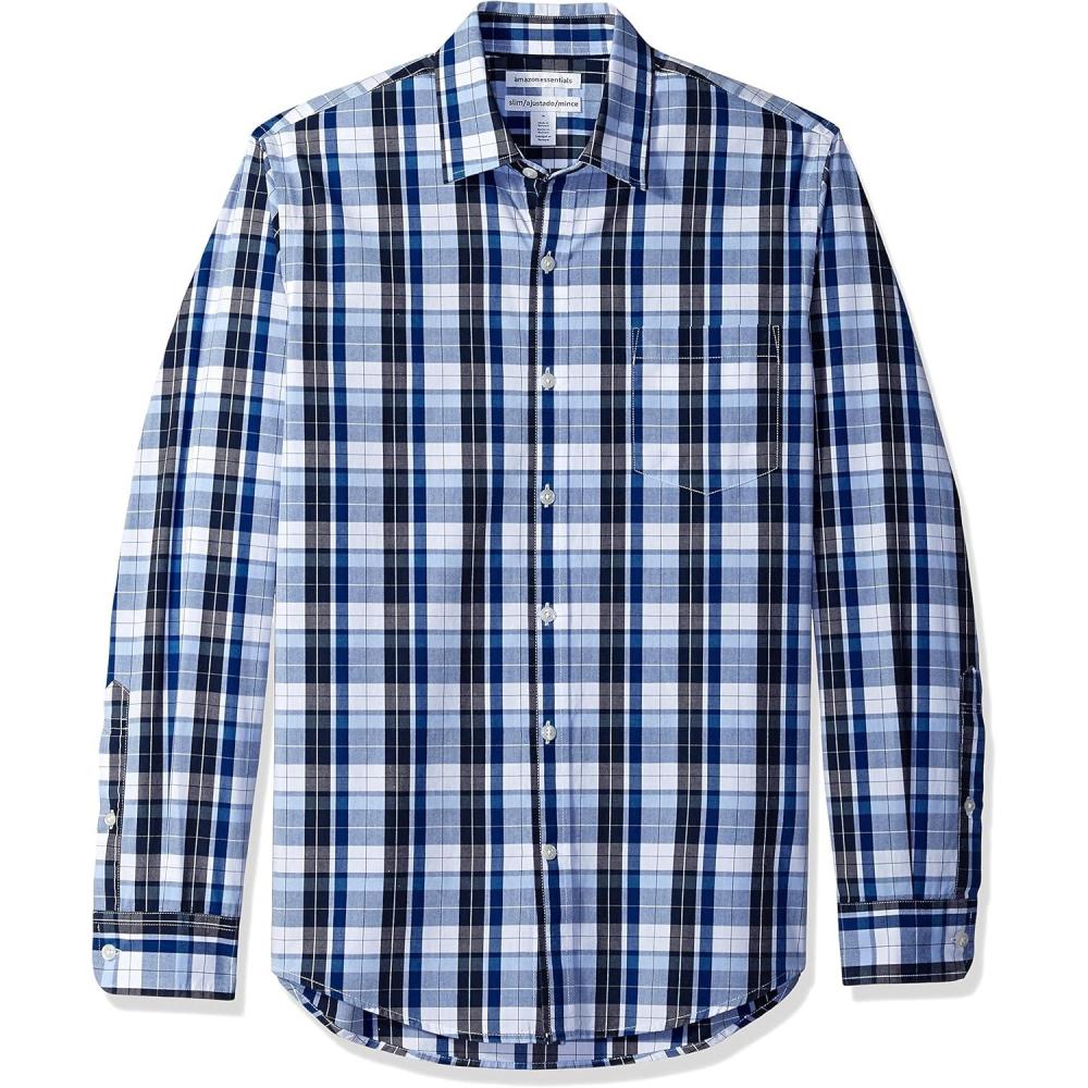 Amazon Essentials Men's Slim-Fit Long-Sleeve Poplin Shirt(Blue Charcoal Plaid)