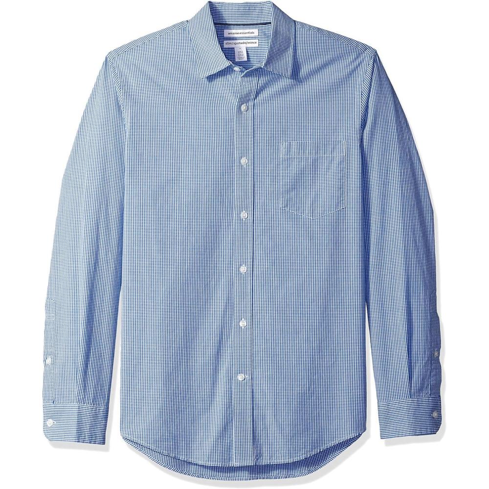 Amazon Essentials Men's Slim-Fit Long-Sleeve Poplin Shirt(Blue Gingham)