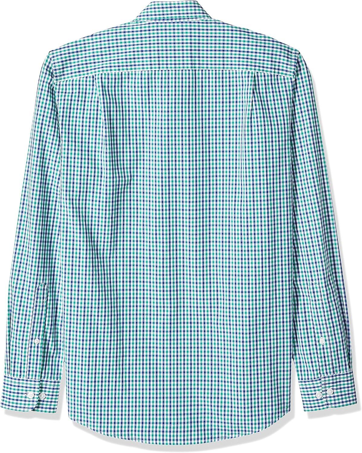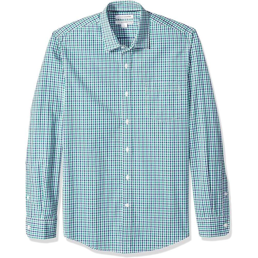 Amazon Essentials Men's Slim-Fit Long-Sleeve Poplin Shirt(Blue Green Gingham)