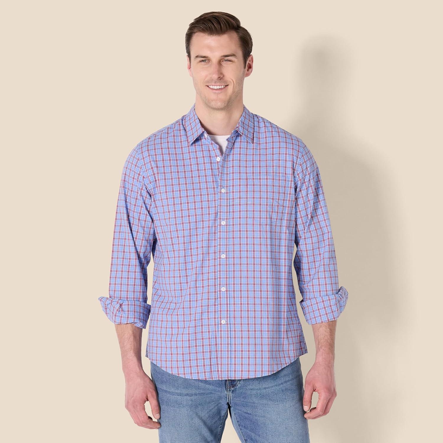 Amazon Essentials Men’s Slim-Fit Long-Sleeve Poplin Shirt(Red/Blue Plaid)