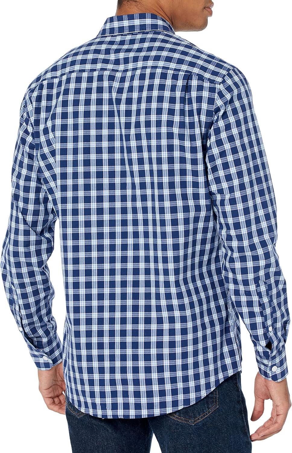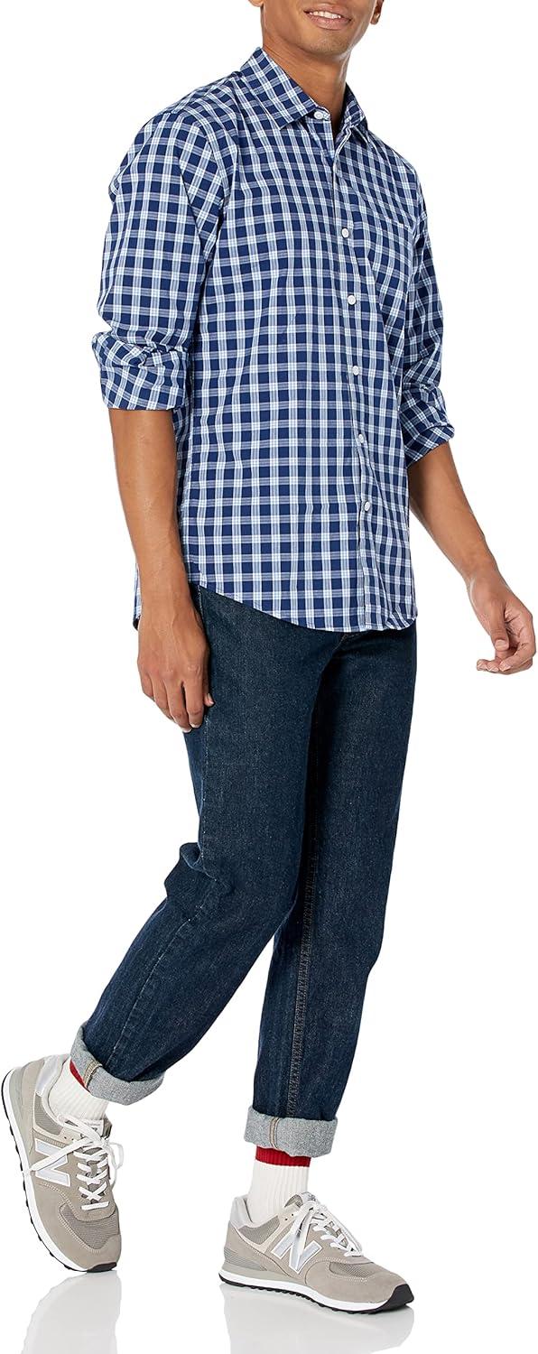 Amazon Essentials Men’s Slim-Fit Long-Sleeve Poplin Shirt(Blue Grey White Plaid)
