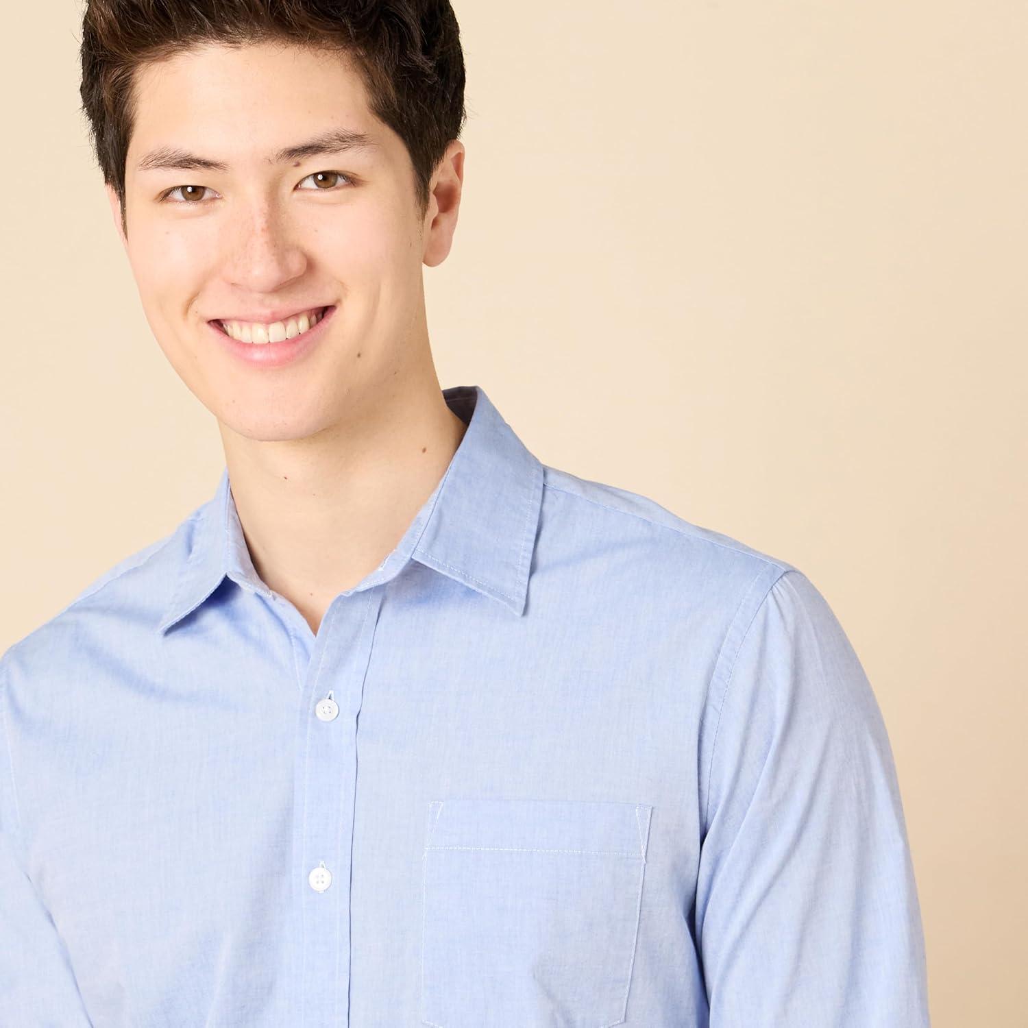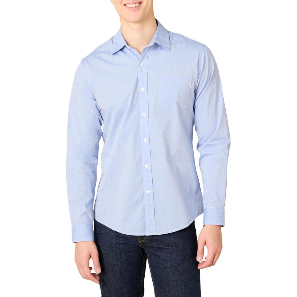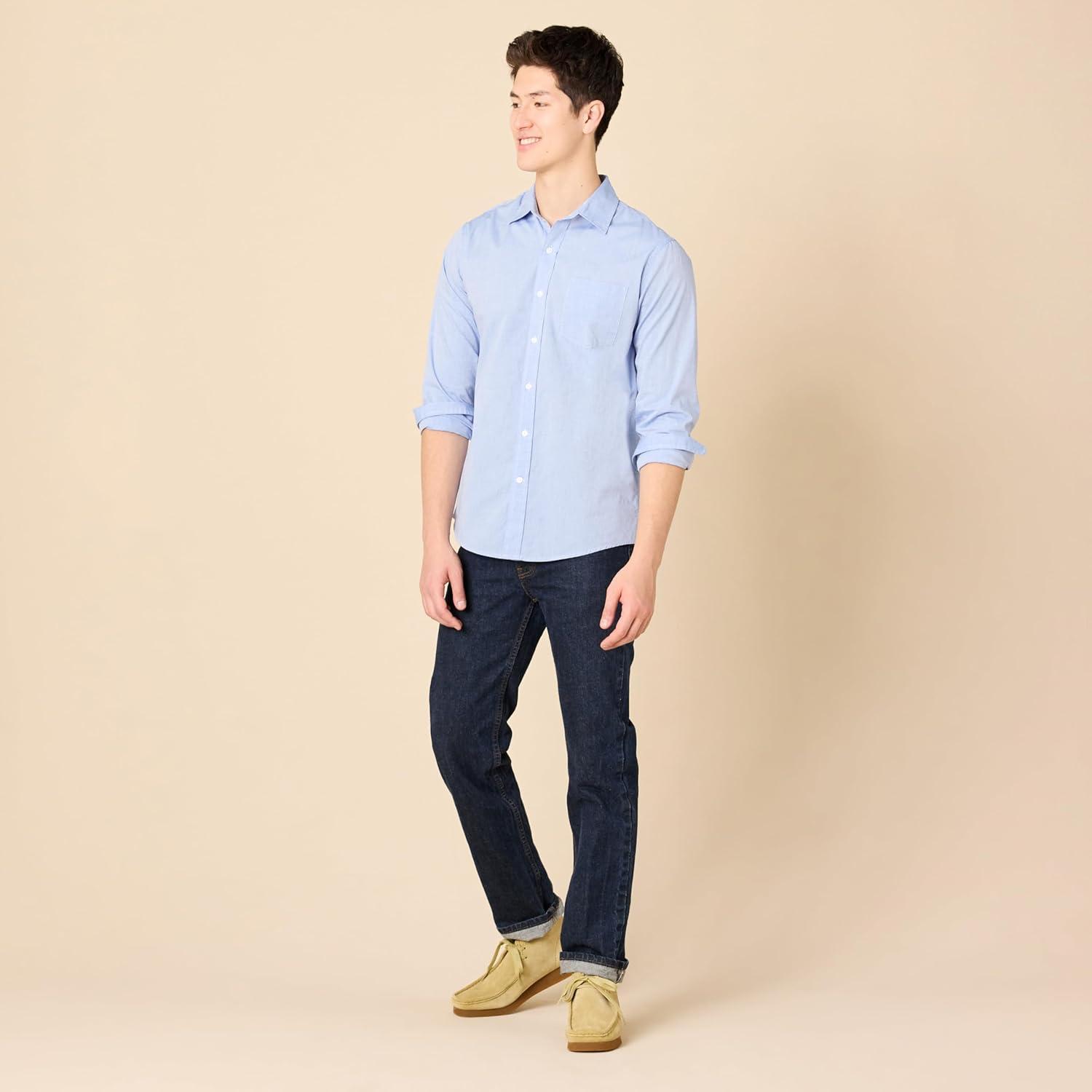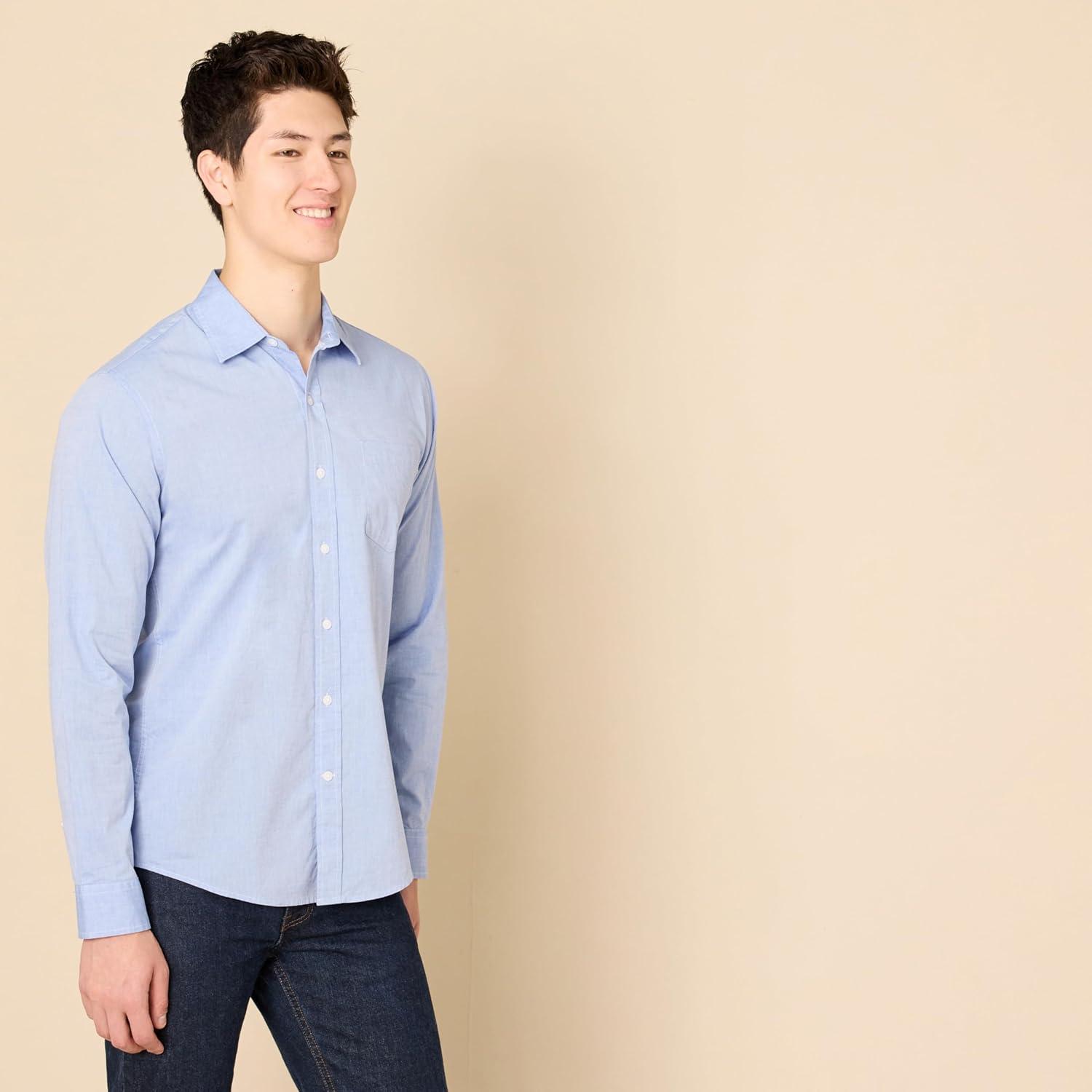 Amazon Essentials Men’s Slim-Fit Long-Sleeve Poplin Shirt(French Blue)