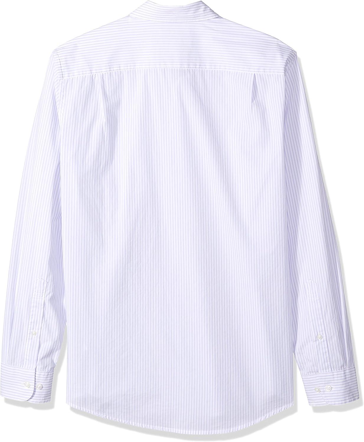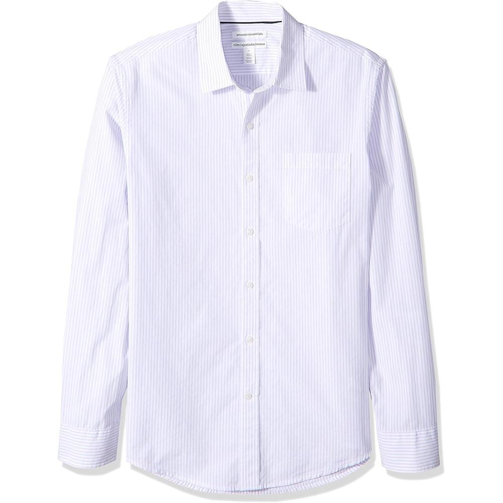 Amazon Essentials Men’s Slim-Fit Long-Sleeve Poplin Shirt(Lavender White Vertical Stripe)