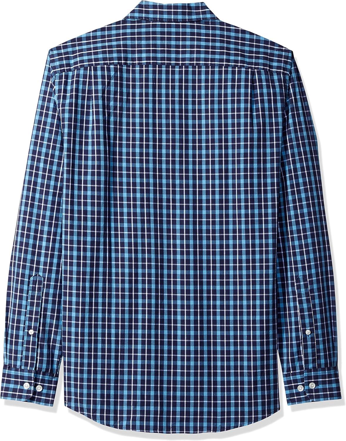 Amazon Essentials Men’s Slim-Fit Long-Sleeve Poplin Shirt(Navy White Plaid)