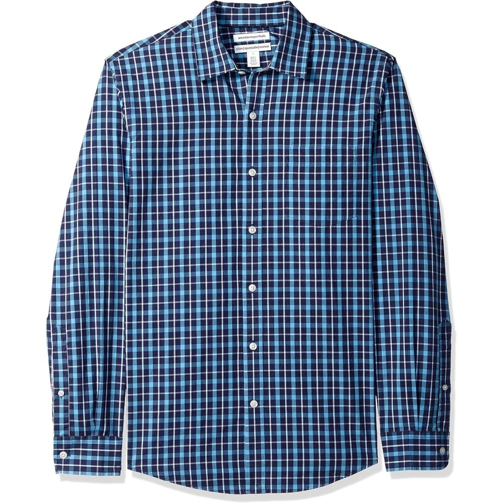 Amazon Essentials Men's Slim-Fit Long-Sleeve Poplin Shirt(Navy Plaid)