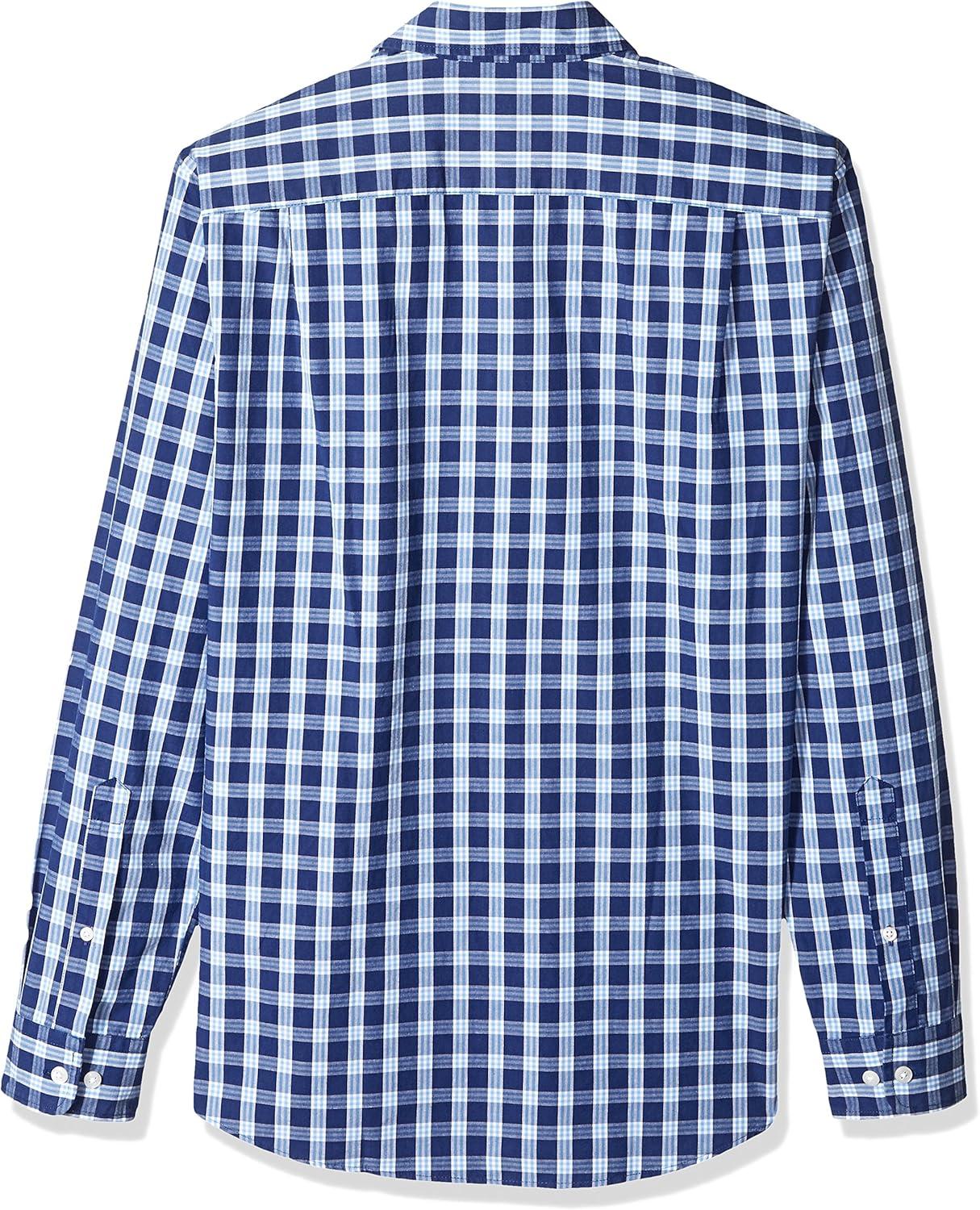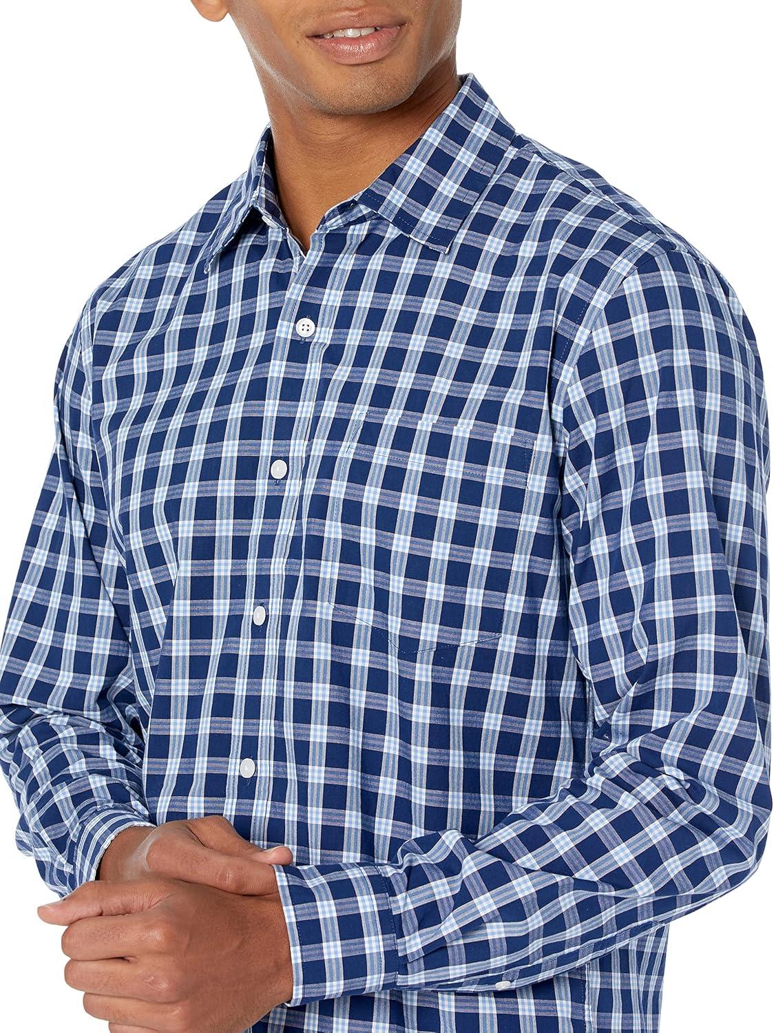 Amazon Essentials Men's Slim-Fit Long-Sleeve Poplin Shirt(Navy White Plaid)