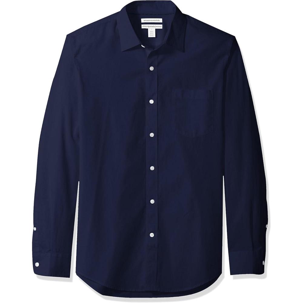 Amazon Essentials Men’s Slim-Fit Long-Sleeve Poplin Shirt(Navy)