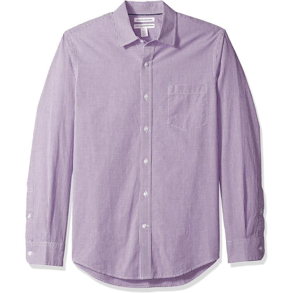 Amazon Essentials Men’s Slim-Fit Long-Sleeve Poplin Shirt(Purple White Gingham)