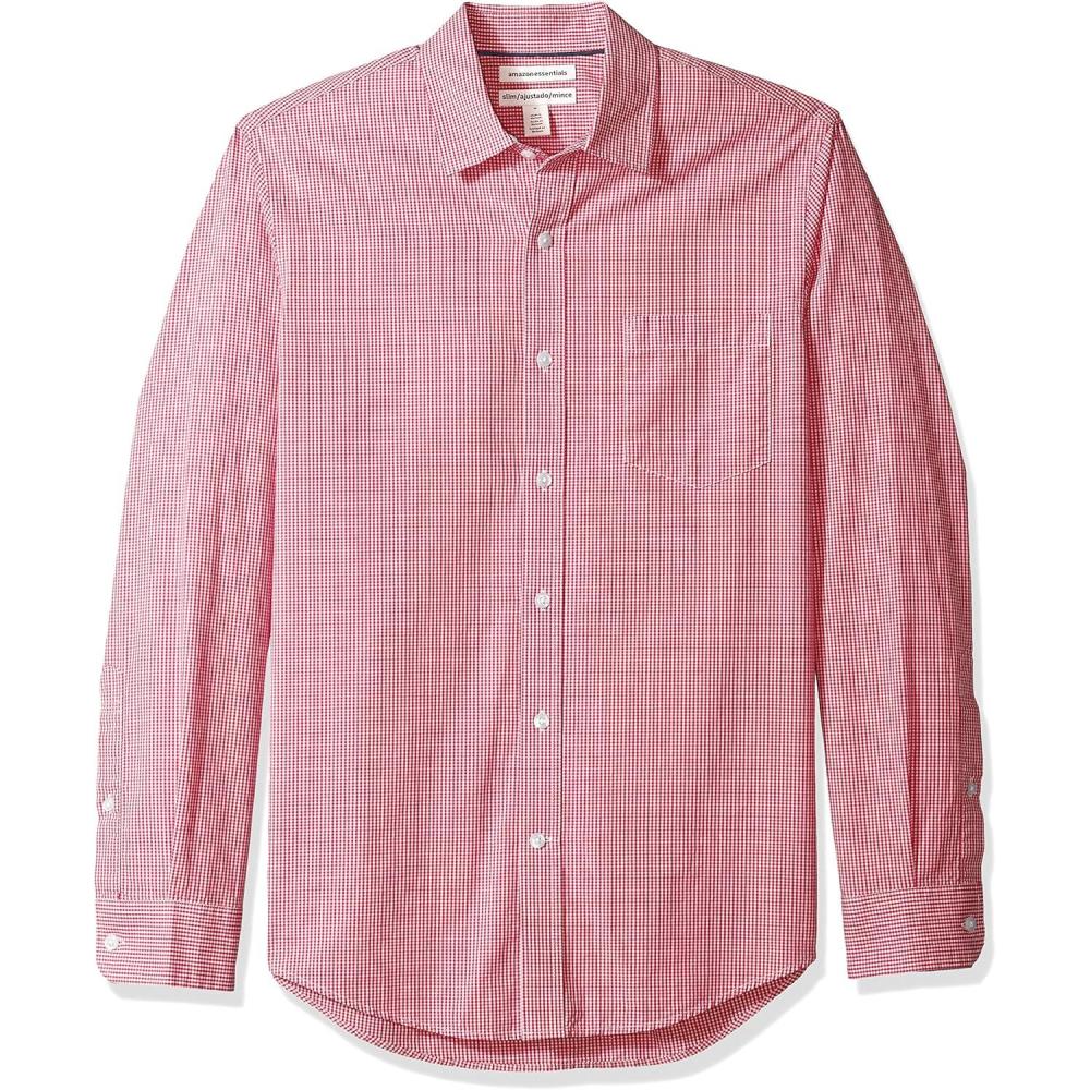 Amazon Essentials Men's Slim-Fit Long-Sleeve Poplin Shirt(Red Gingham)