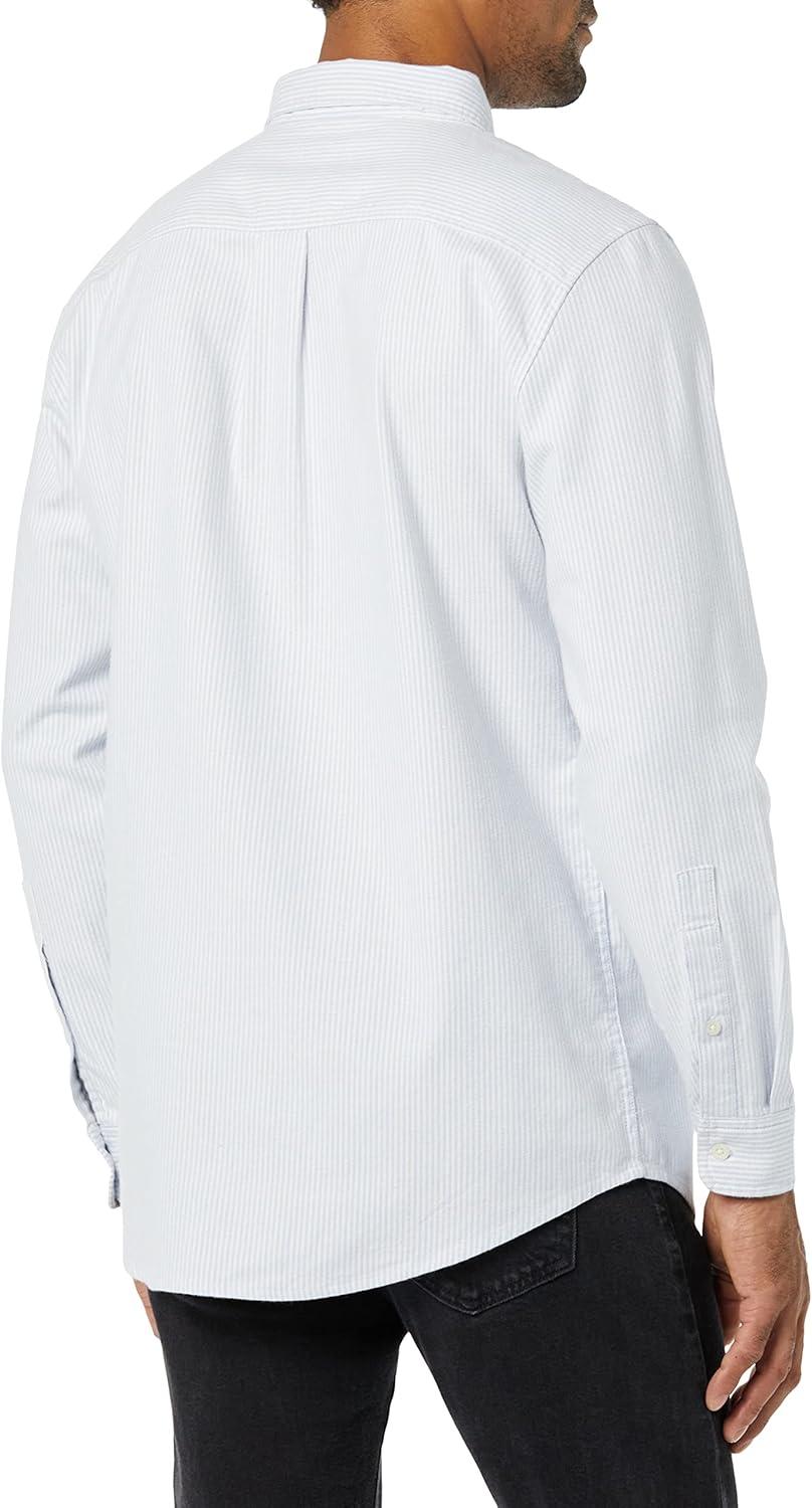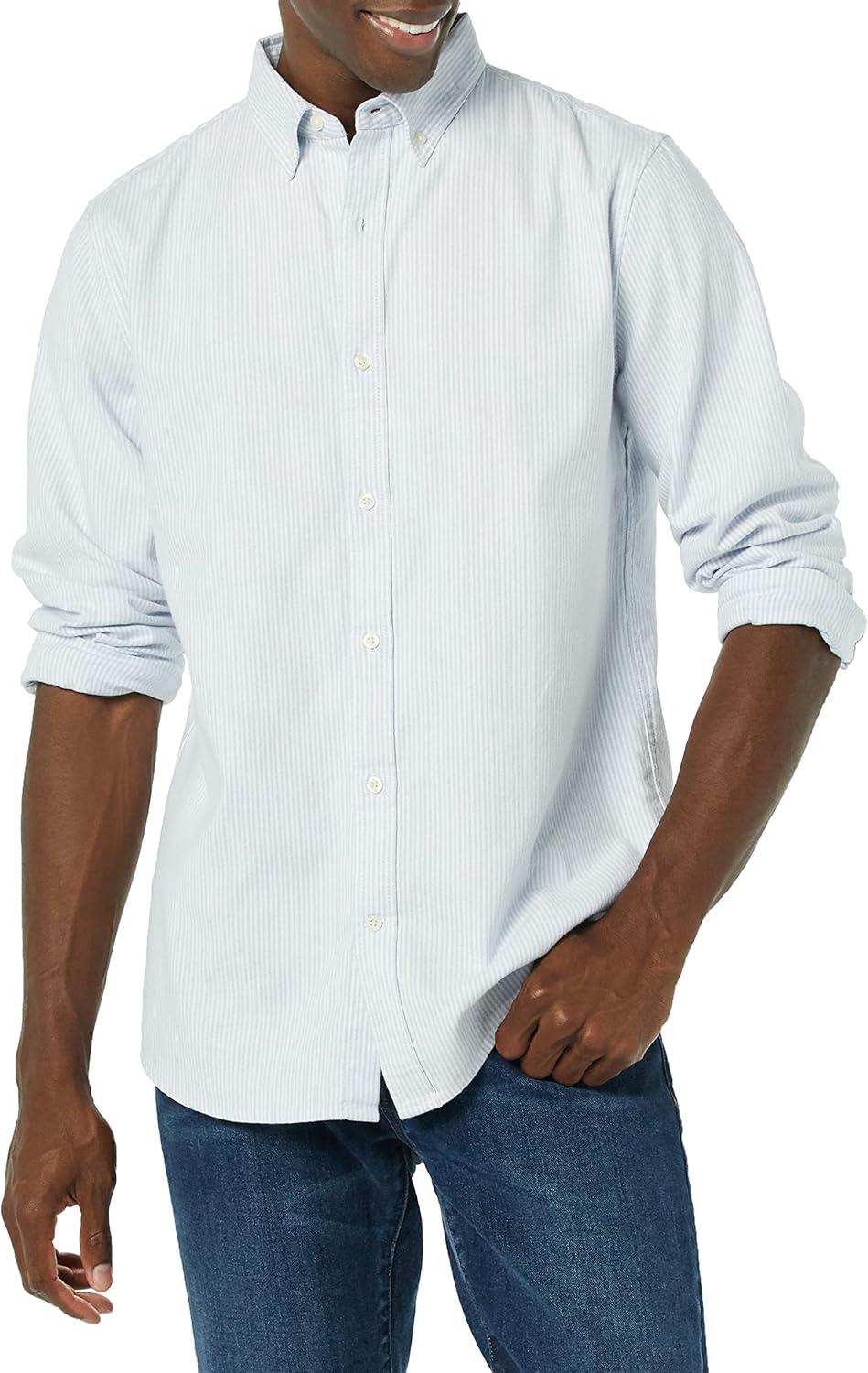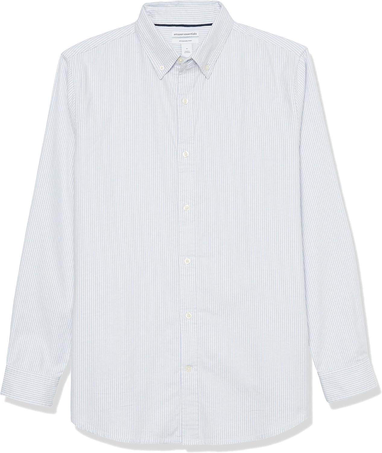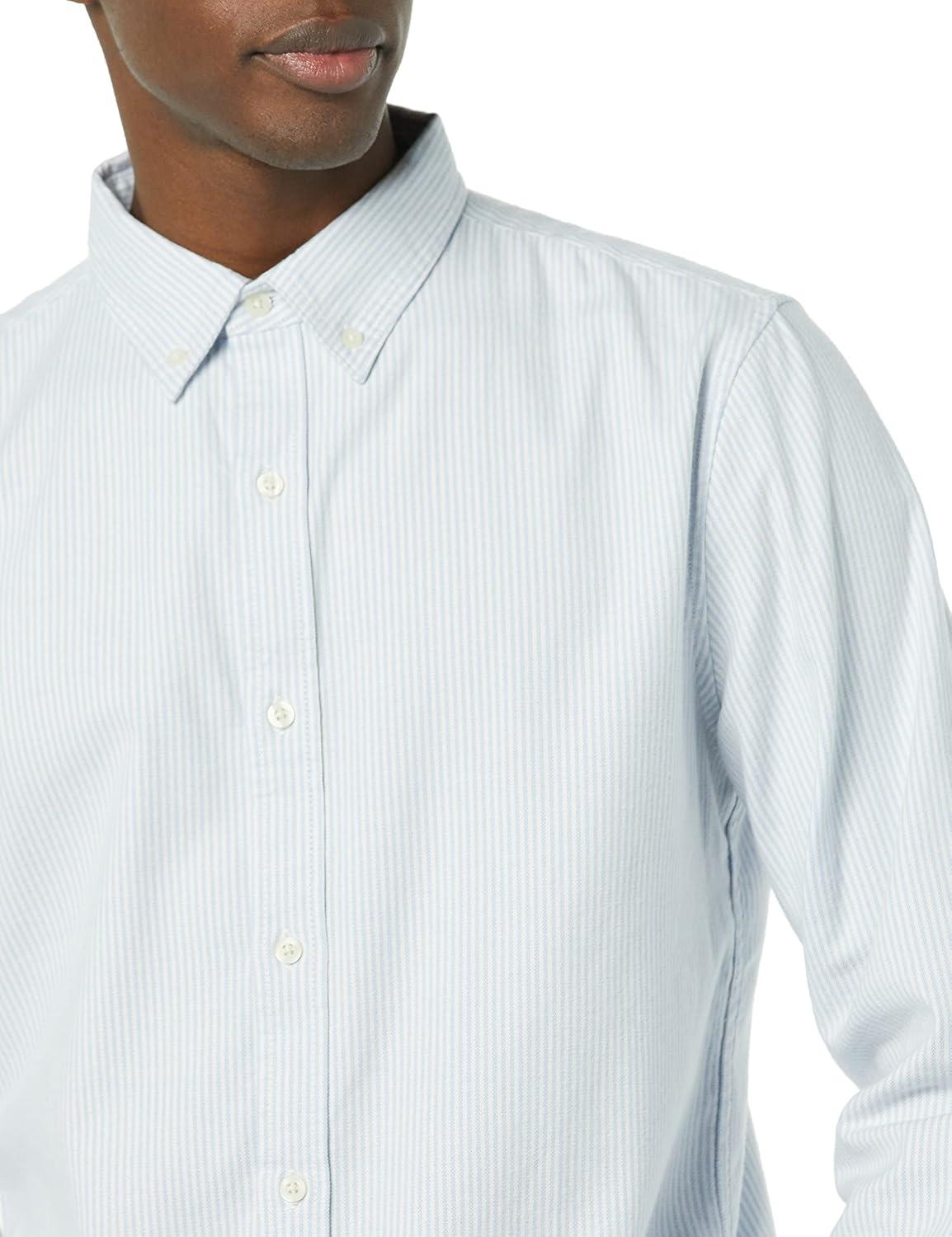 Amazon Essentials Men’s Slim-Fit Long-Sleeve Stretch Oxford Shirt with Pocket(Powder Blue Vertical Stripe)