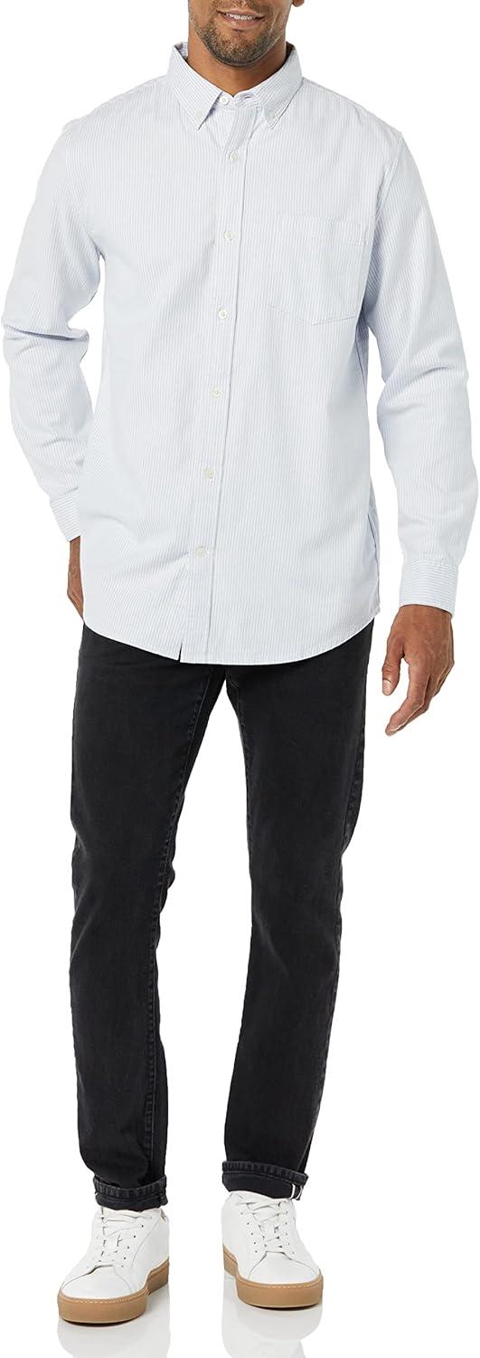 Amazon Essentials Men’s Slim-Fit Long-Sleeve Stretch Oxford Shirt with Pocket(Powder Blue)
