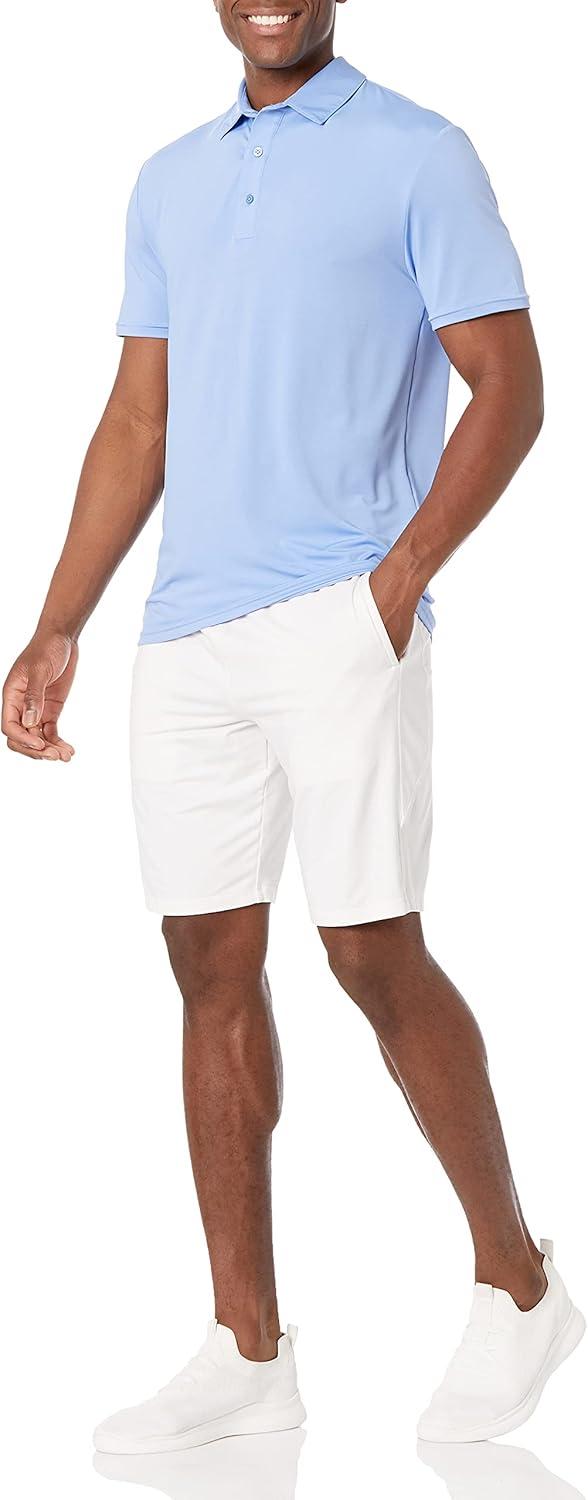 Crafted with tech stretch fabric and moisture-wicking capabilities, allowing you to stay dry and comfortable throughout the day. The classic design includes a functional button placket and fitted short sleeves. At Amazon Essentials, we value affordability and quality, offering polo shirts for men that stand the test of time.