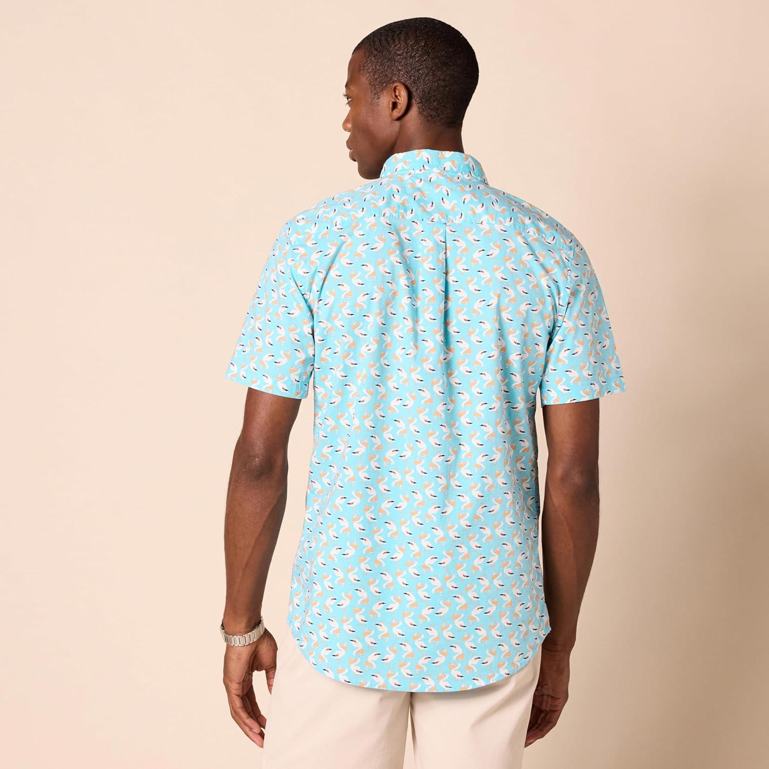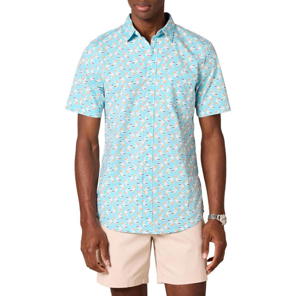 Amazon Essentials Men’s Slim-Fit Short-Sleeve Poplin Shirt(Aqua Blue)