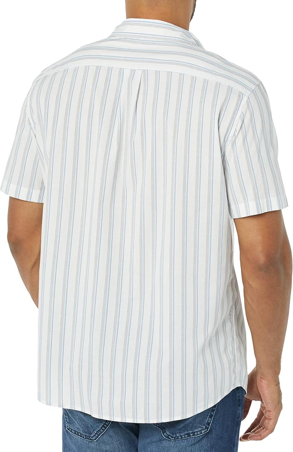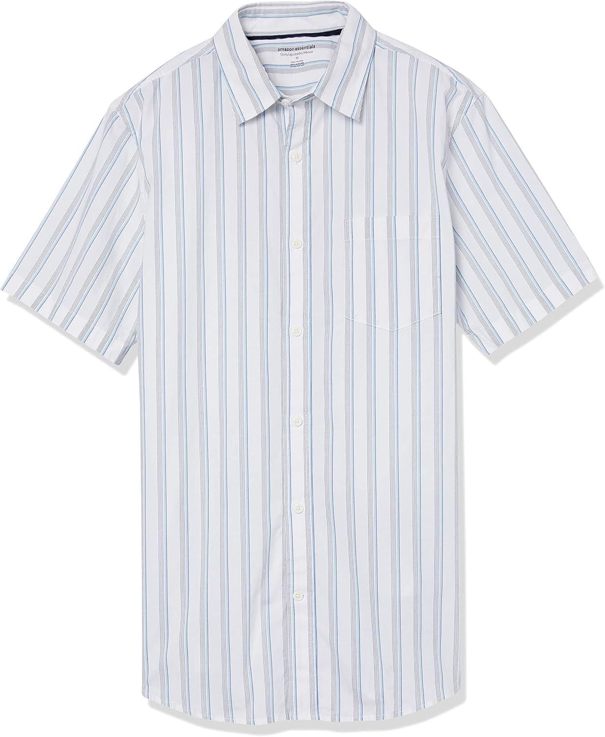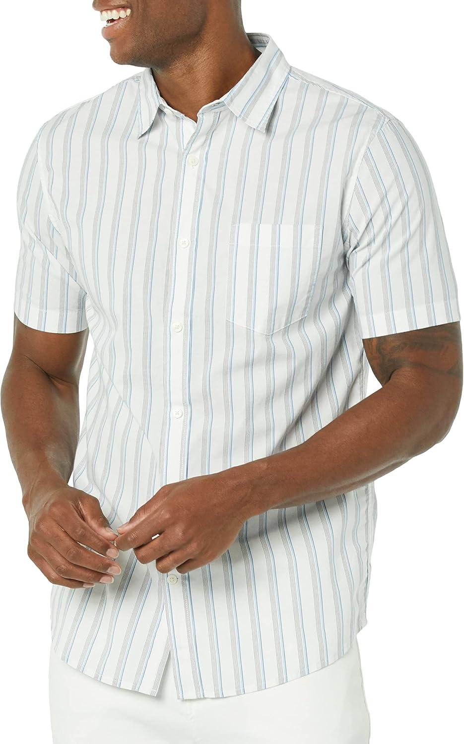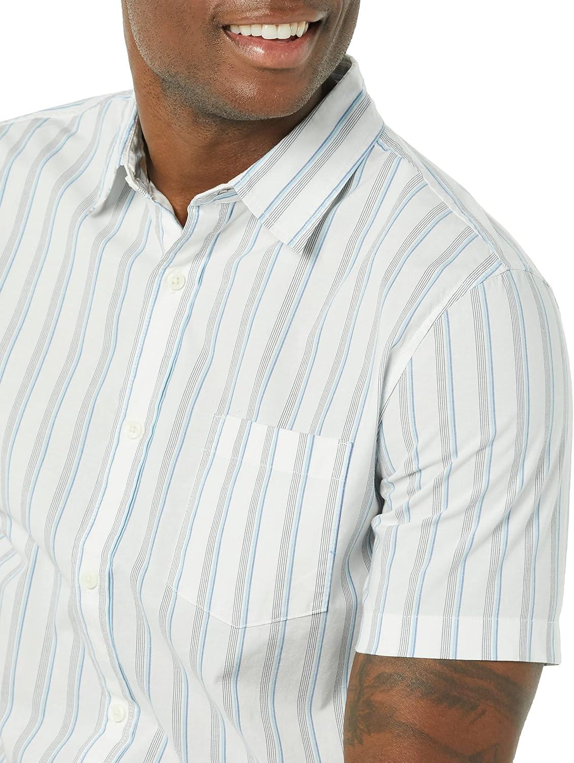 Amazon Essentials Men's Slim-Fit Short-Sleeve Poplin Shirt(Blue Grey White Stripe)