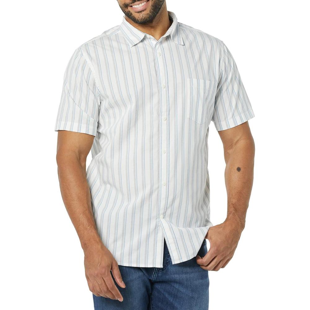 Amazon Essentials Men’s Slim-Fit Short-Sleeve Poplin Shirt(Blue Grey White Stripe)