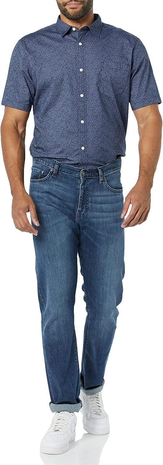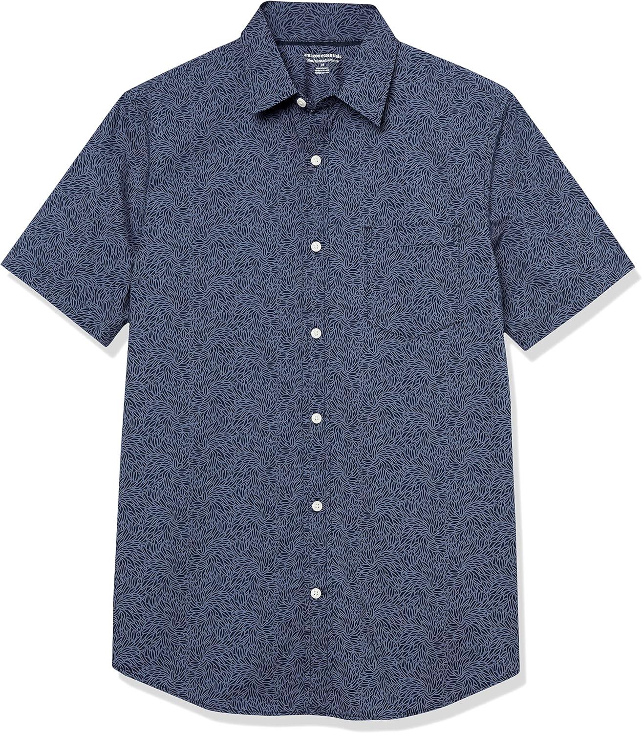 Amazon Essentials Men’s Slim-Fit Short-Sleeve Poplin Shirt(Navy Floral)