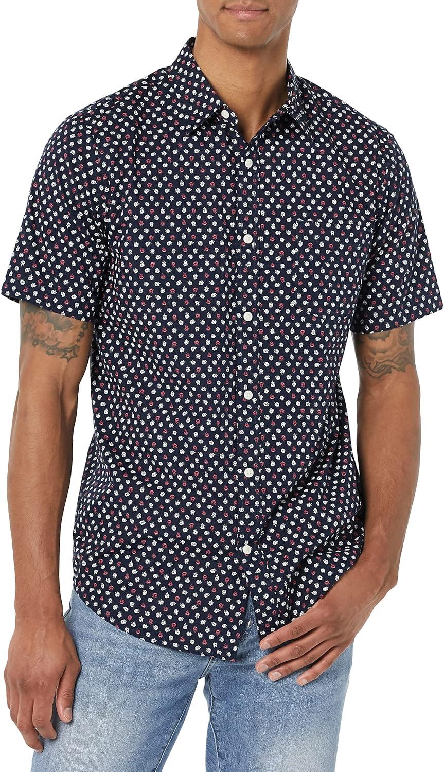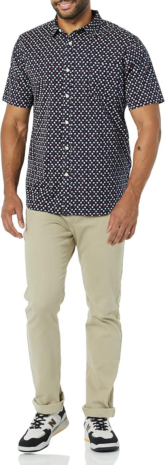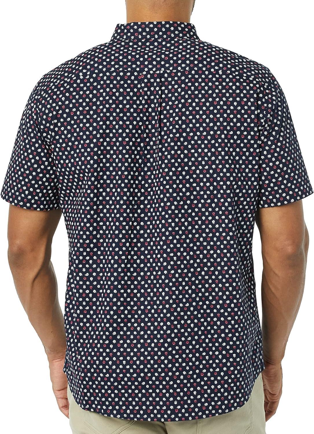 Amazon Essentials Men’s Slim-Fit Short-Sleeve Poplin Shirt(Navy Roses)