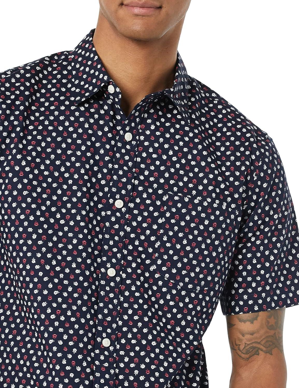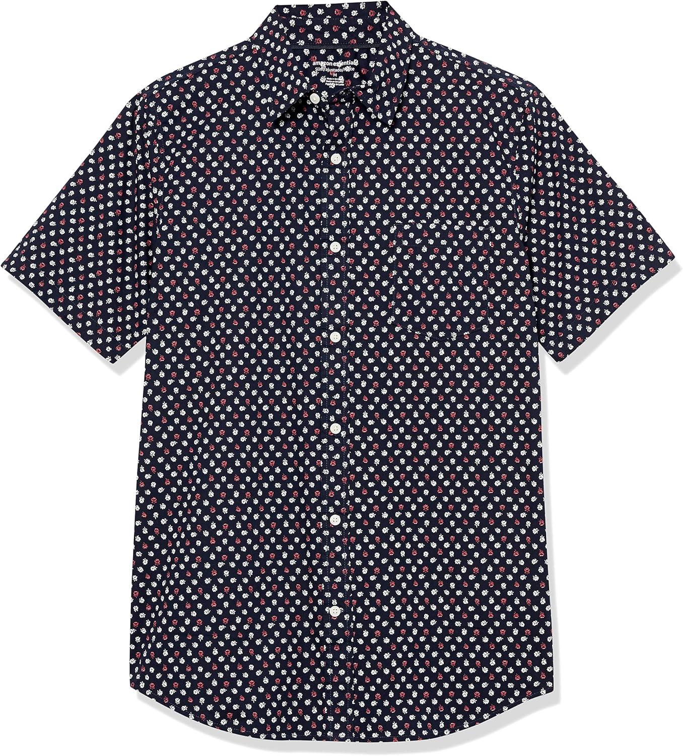 Amazon Essentials Men's Slim-Fit Short-Sleeve Poplin Shirt(Navy Roses)