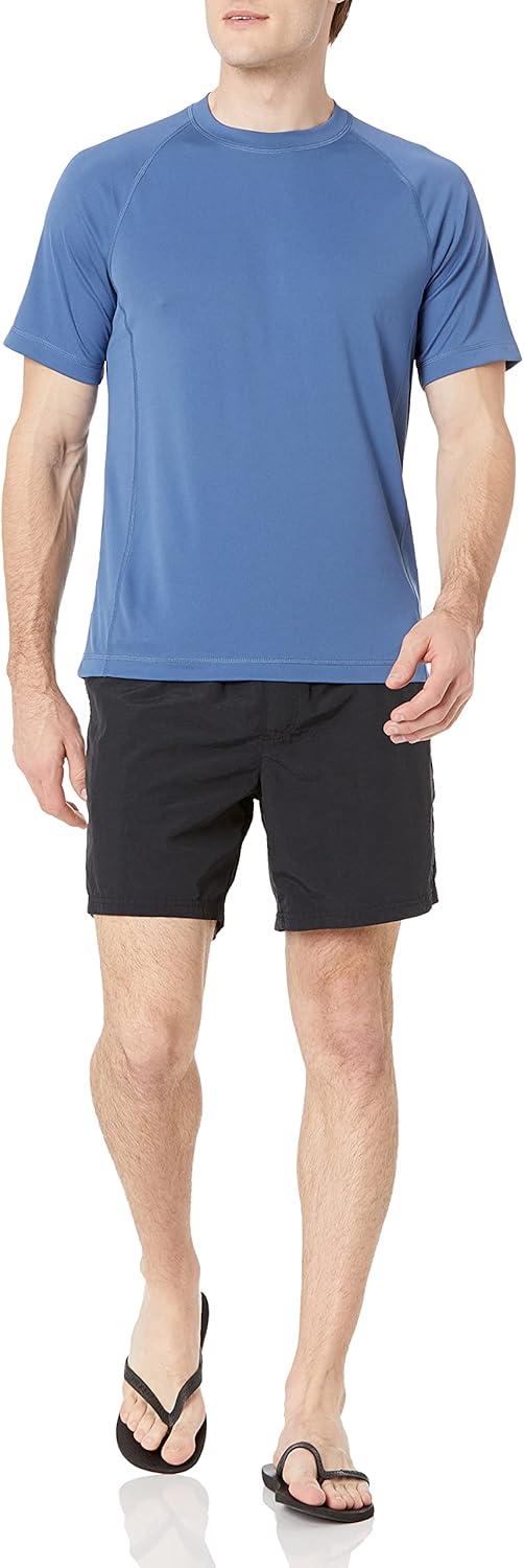 An Amazon brand – Short-sleeve swim tee featuring quick-dry UPF fabric, raglan seams, and exposed stitching;