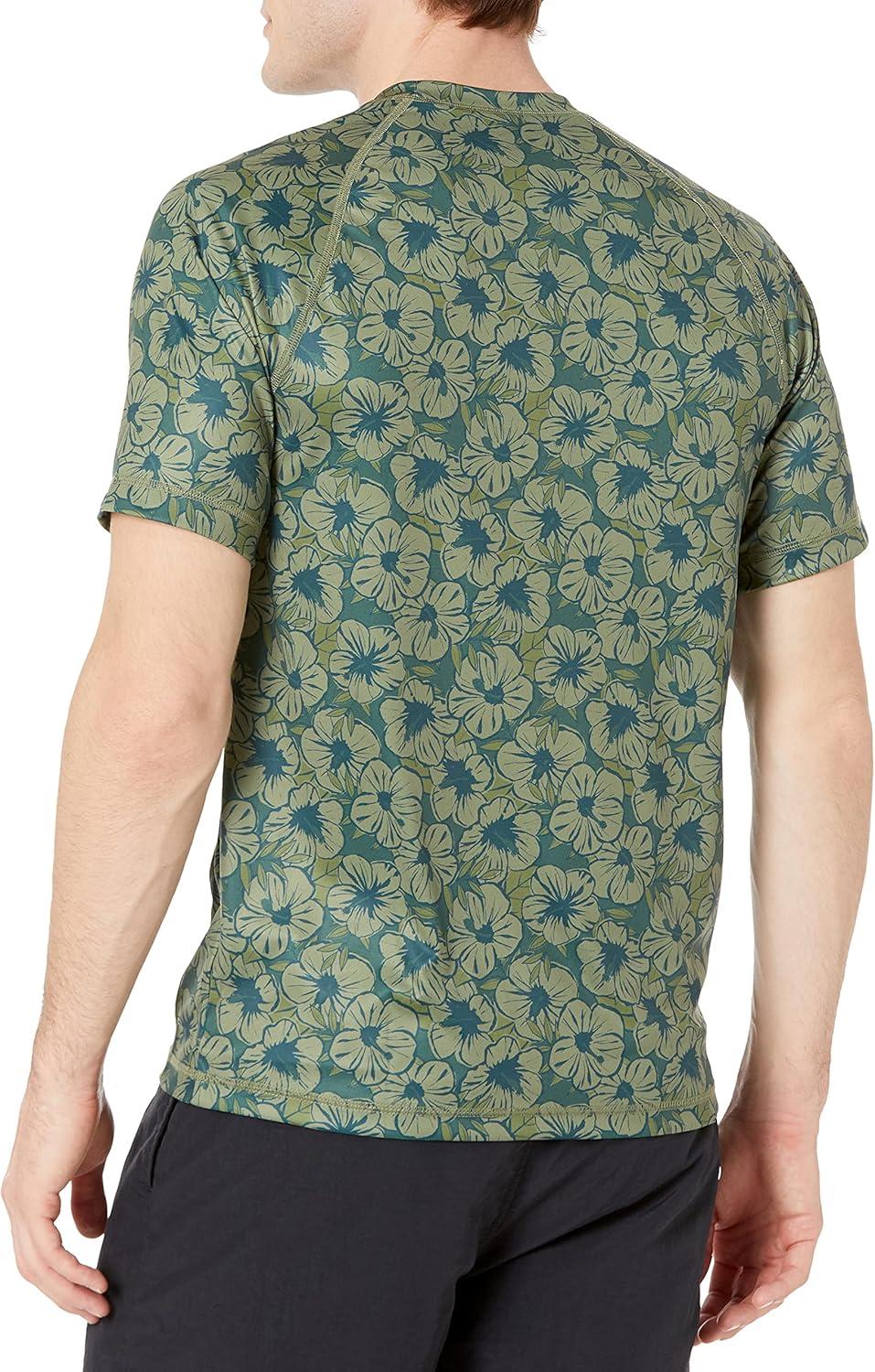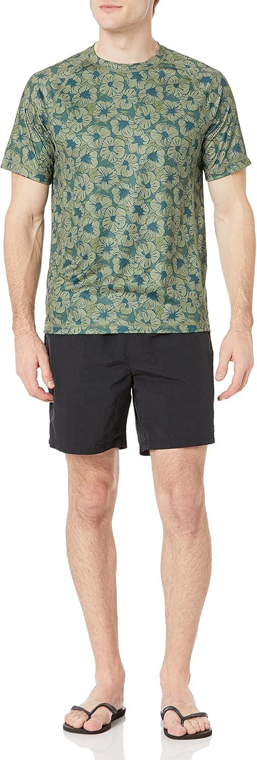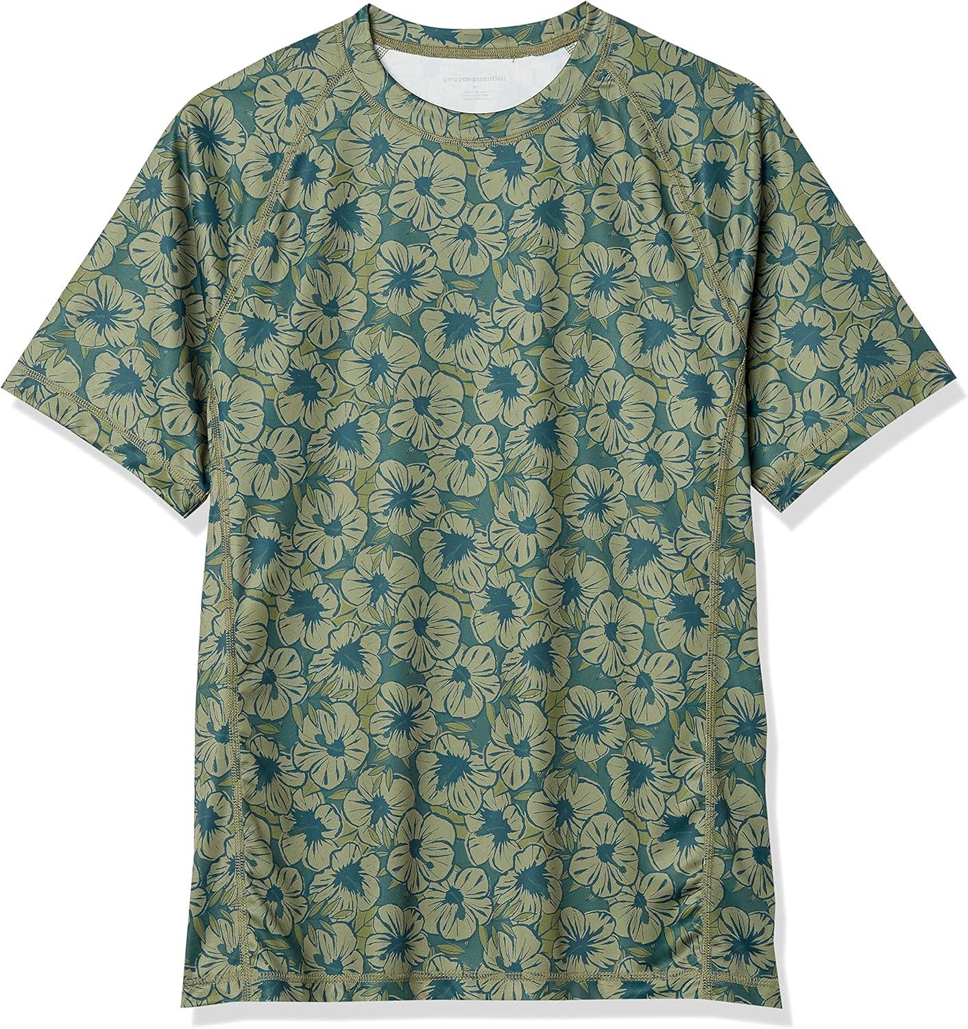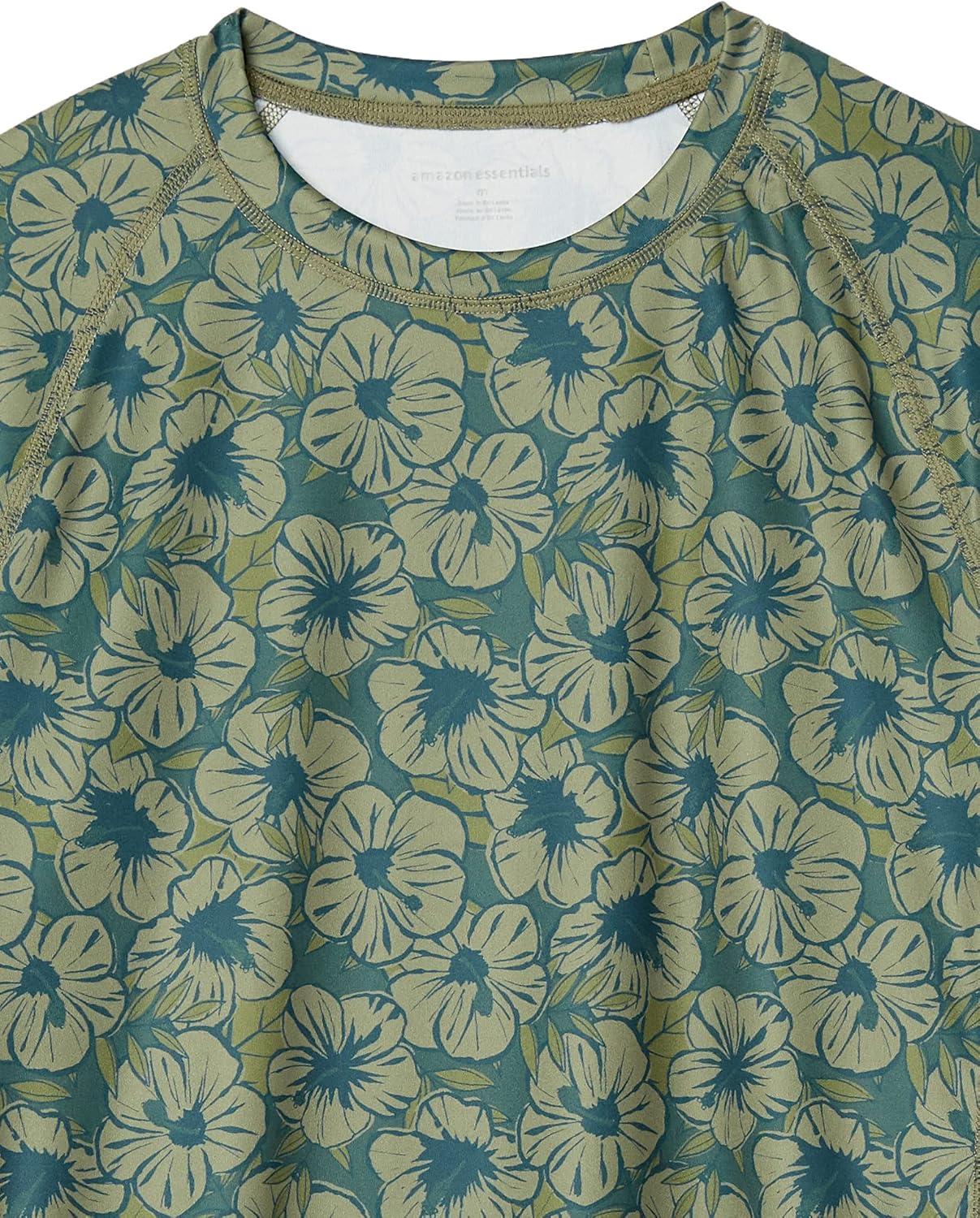 Amazon Essentials Men’s Slim-Fit Short-Sleeve Quick-Dry UPF 50 Swim Tee(Olive Hibiscus Flower)