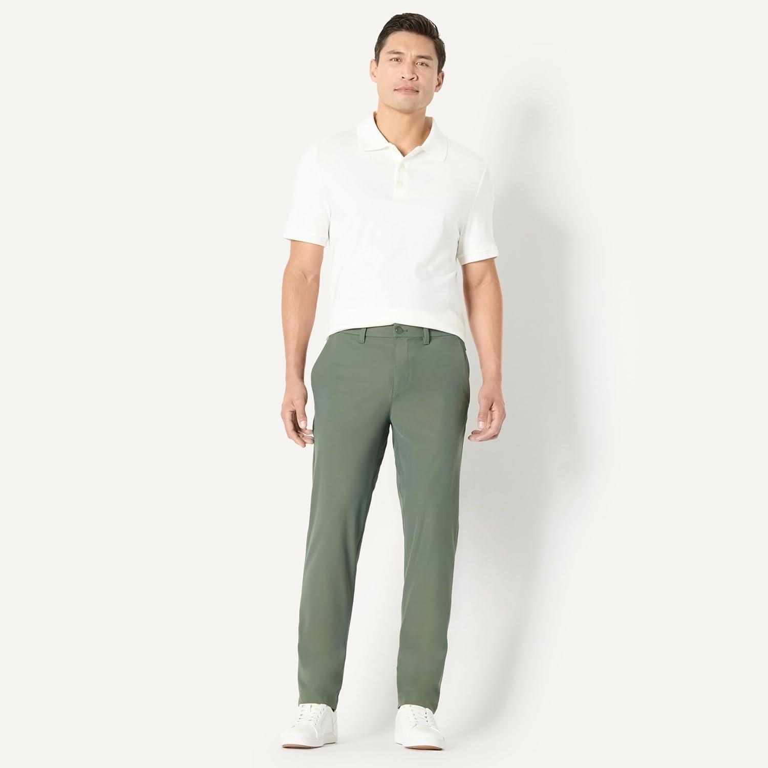 Amazon Essentials Men’s Slim-Fit Travel Stretch Pant(Dark Green)
