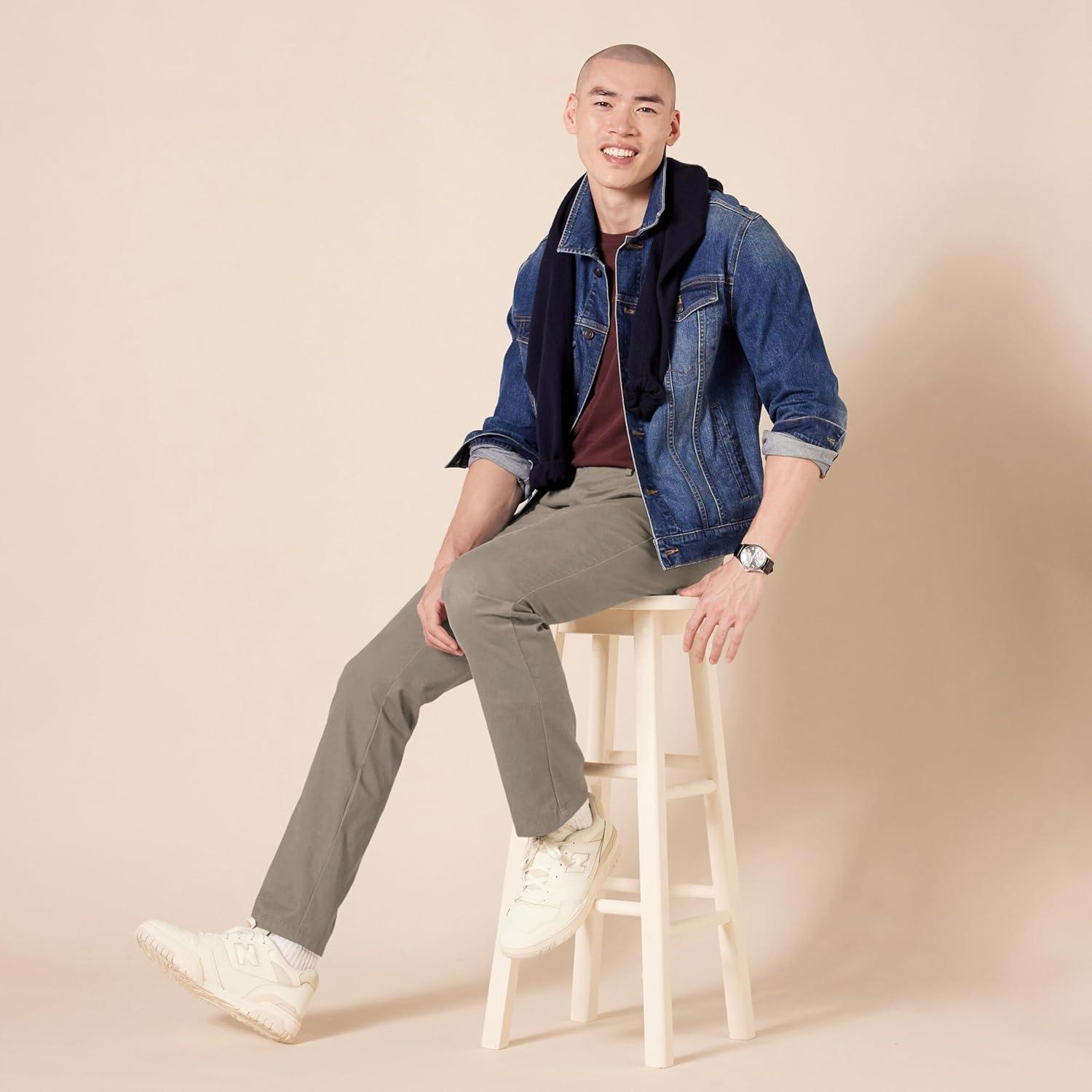 An Amazon brand – This slim-fit chino pant features wrinkle-free fabric, a flat-front design, and button-through back welt pockets for a tailored look and all-day comfort