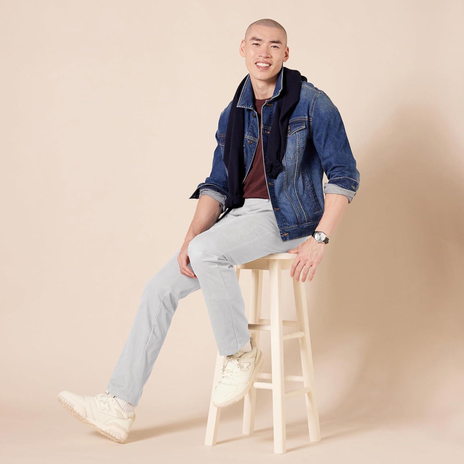 An Amazon brand – This slim-fit chino pant features wrinkle-free fabric, a flat-front design, and button-through back welt pockets for a tailored look and all-day comfort