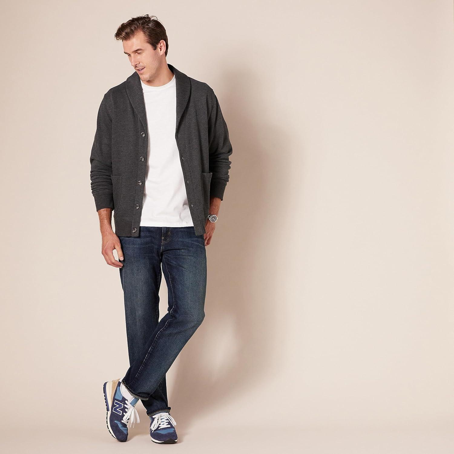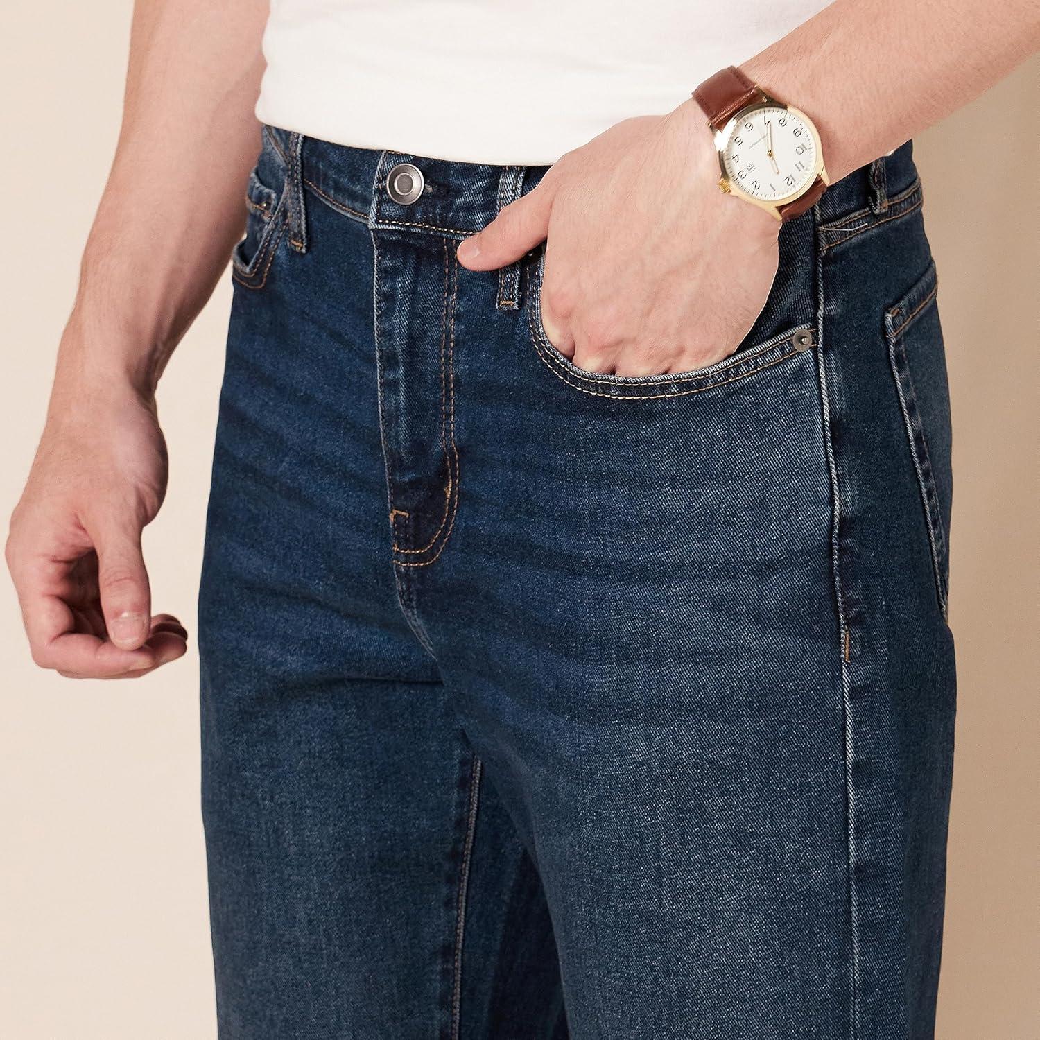 An Amazon brand – These classic 5-pocket straight-fit jeans are crafted with a bit of stretch for additional comfort and to help maintain their shape