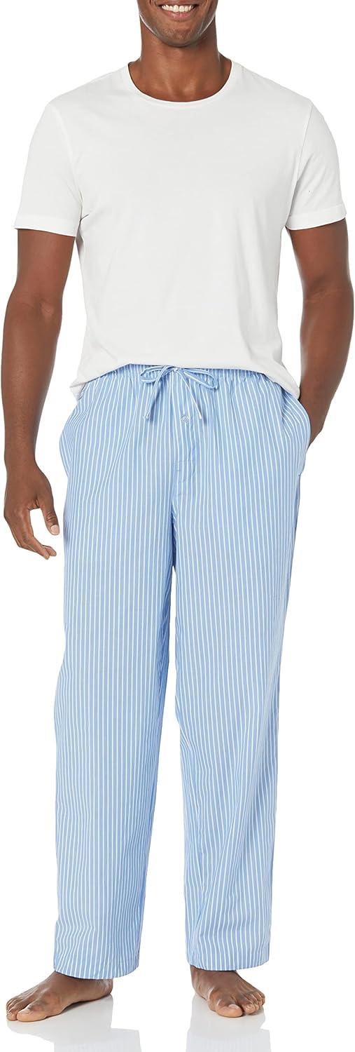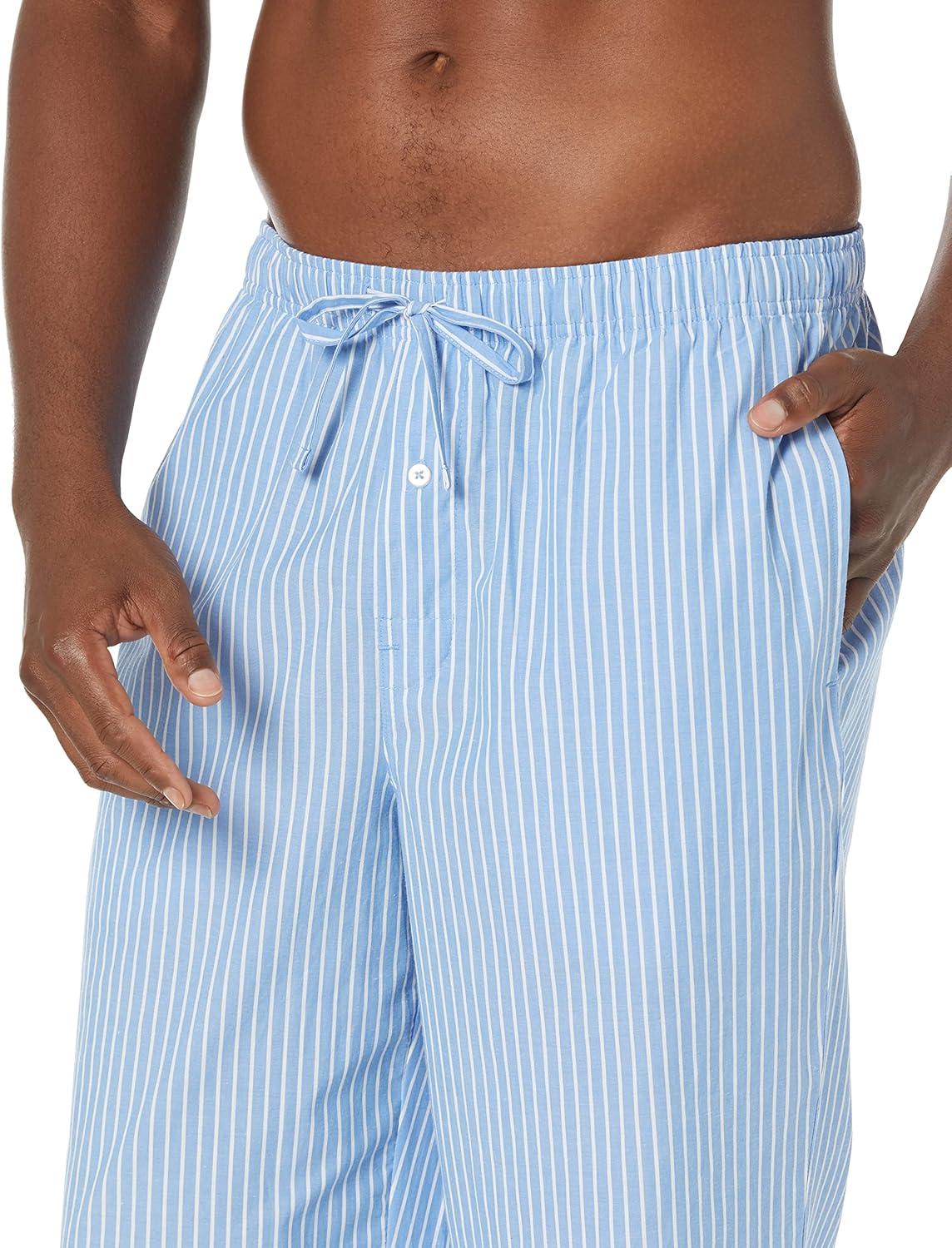 Amazon Essentials Men's Straight-Fit Woven Pajama Pant with Pockets(Light Blue Stripe)