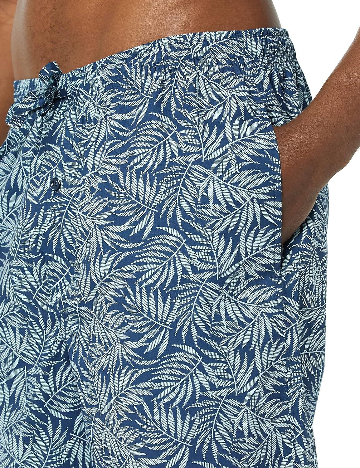 Amazon Essentials Men's Straight-Fit Woven Pajama Pant with Pockets(Navy White Palm Leaf)