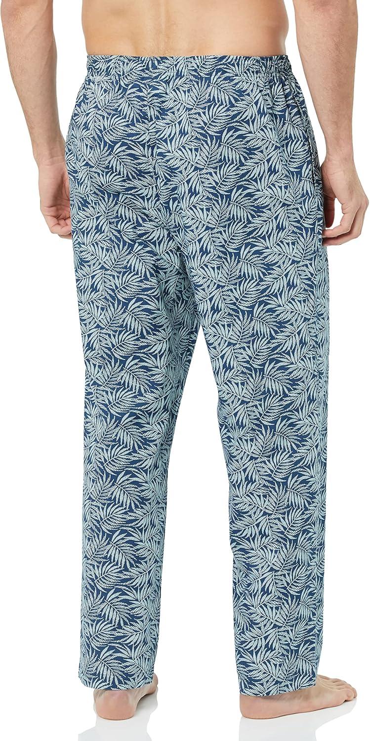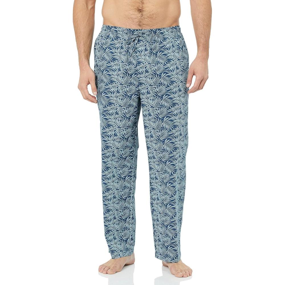 Amazon Essentials Men’s Straight-Fit Woven Pajama Pant with Pockets(Navy White Palm Leaf)