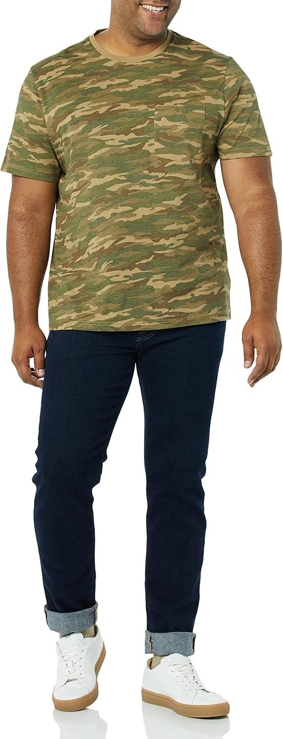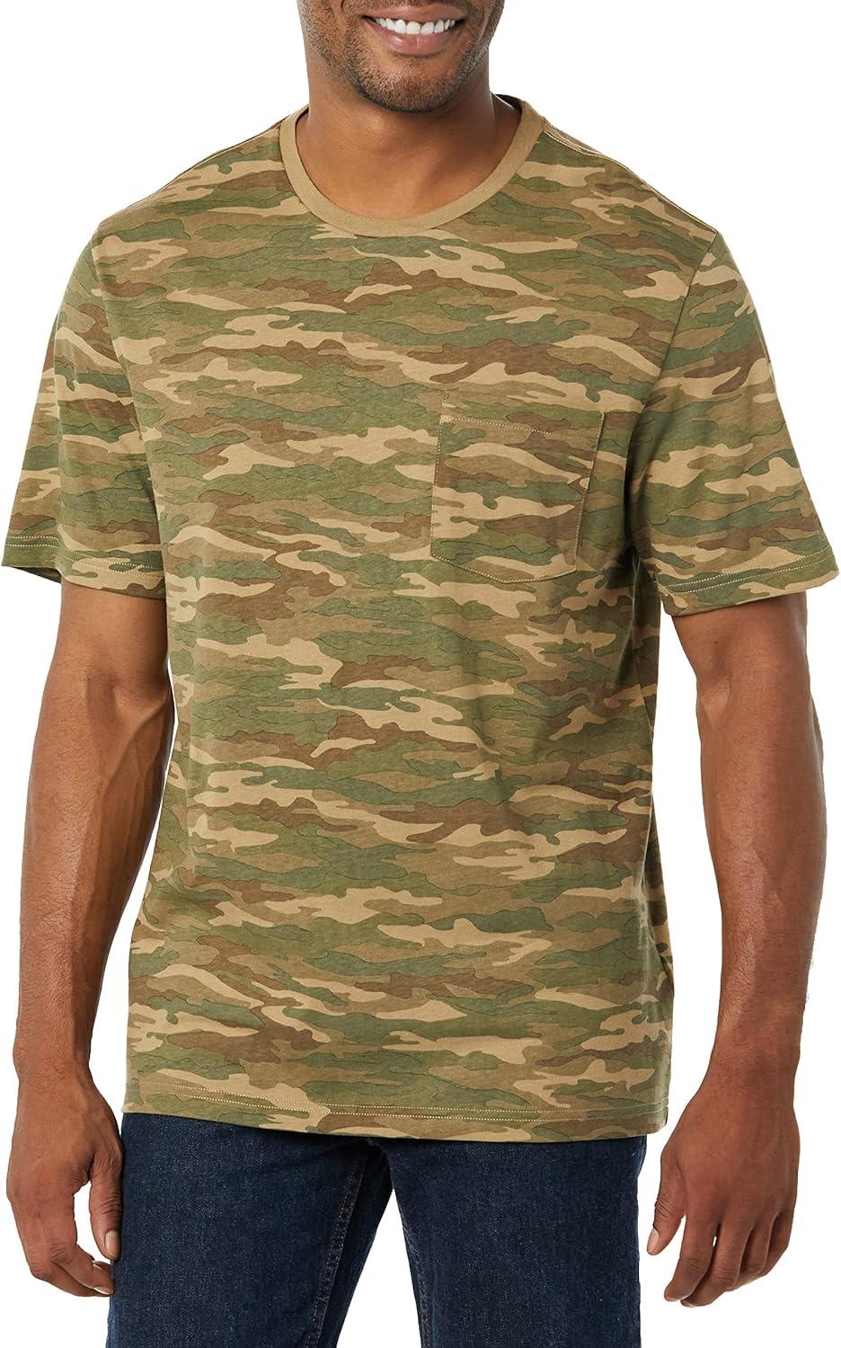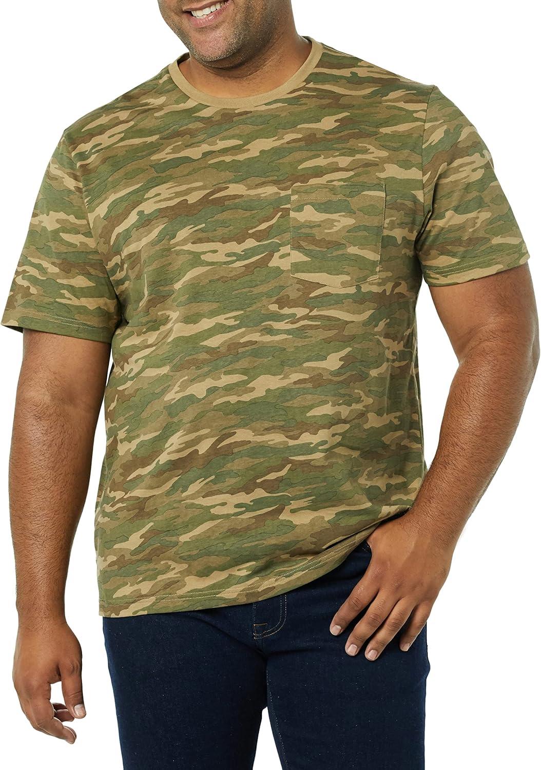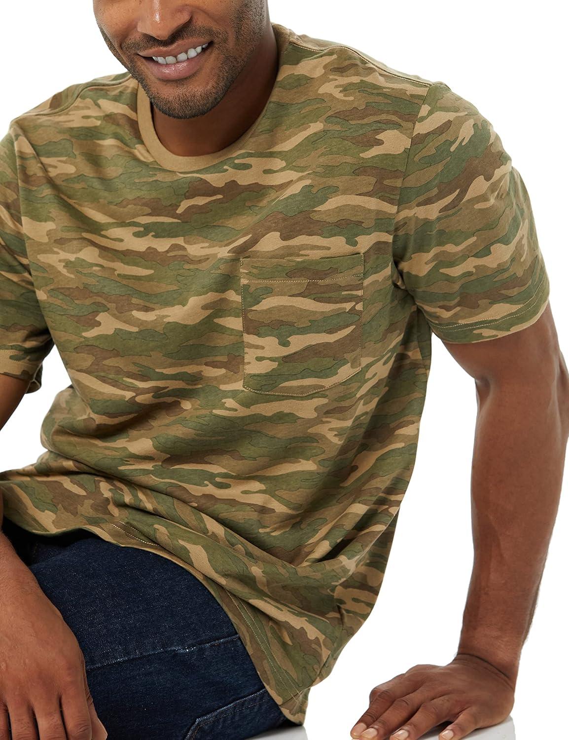 Amazon Essentials Mens T-Shirts, Regular-Fit, Short-Sleeve Crewneck Pocket, Pack of 2(Black/Camo Print)