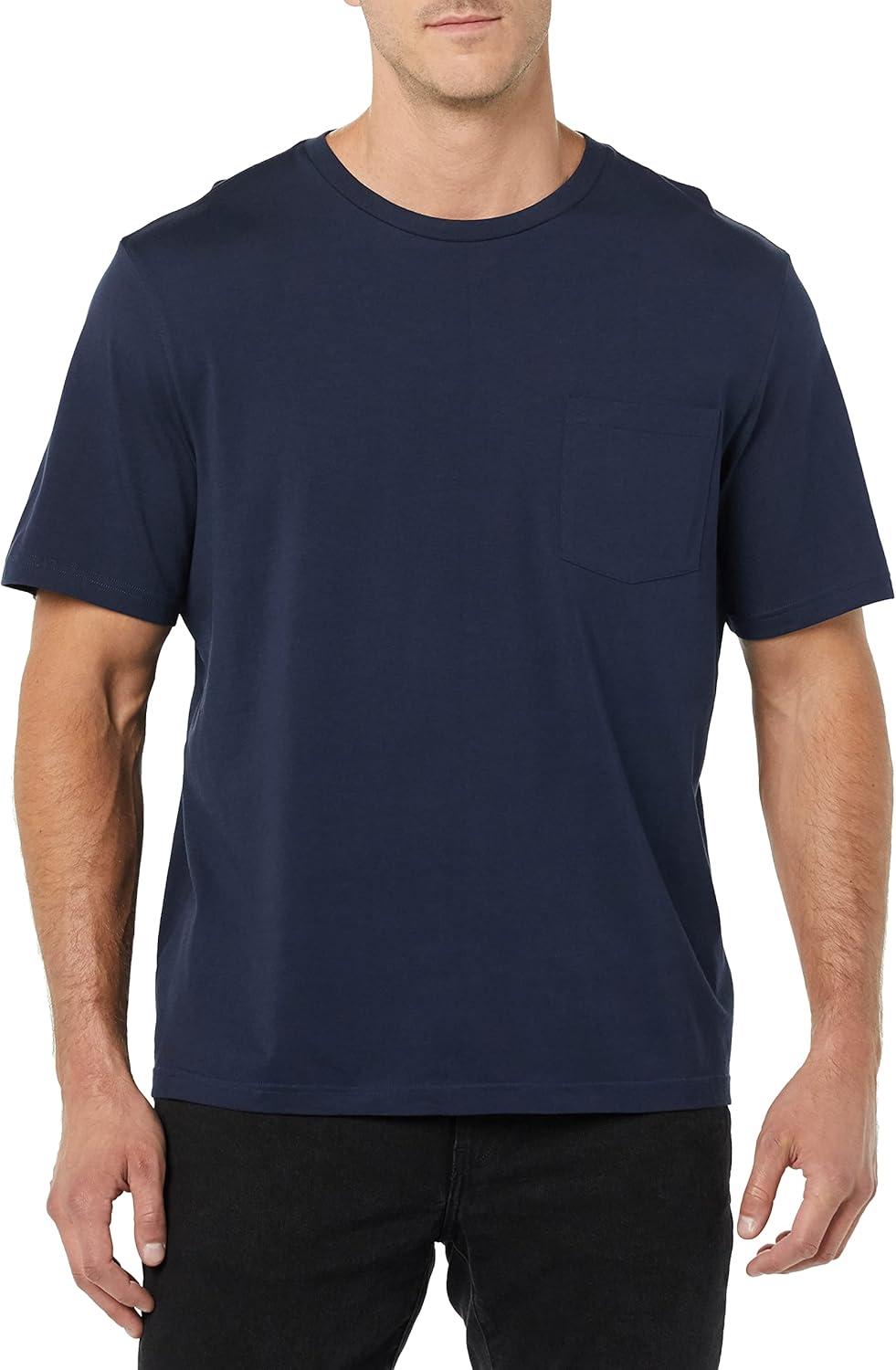 Amazon Essentials Mens T-Shirts, Regular-Fit, Short-Sleeve Crewneck Pocket, Pack of 2(Green/Navy)