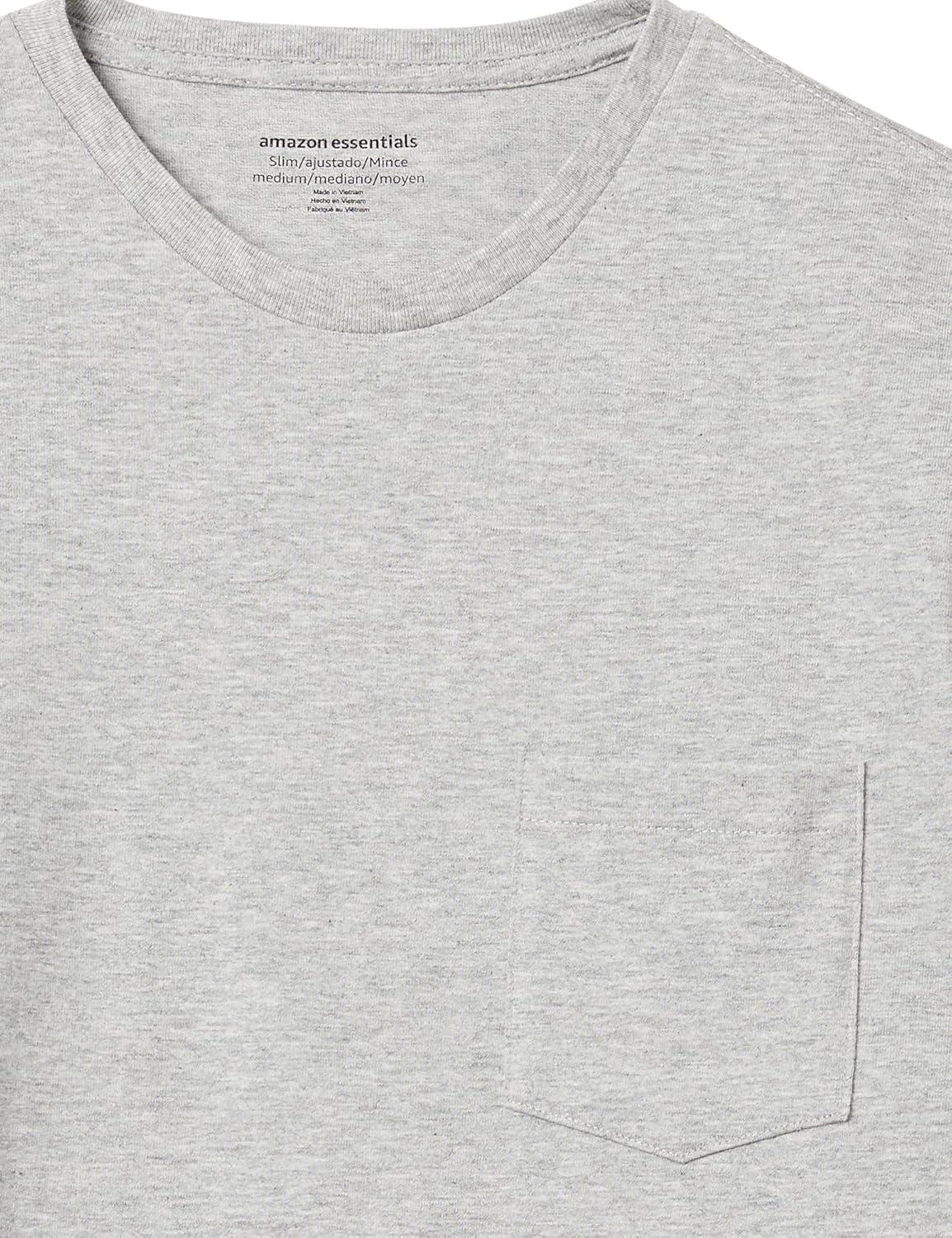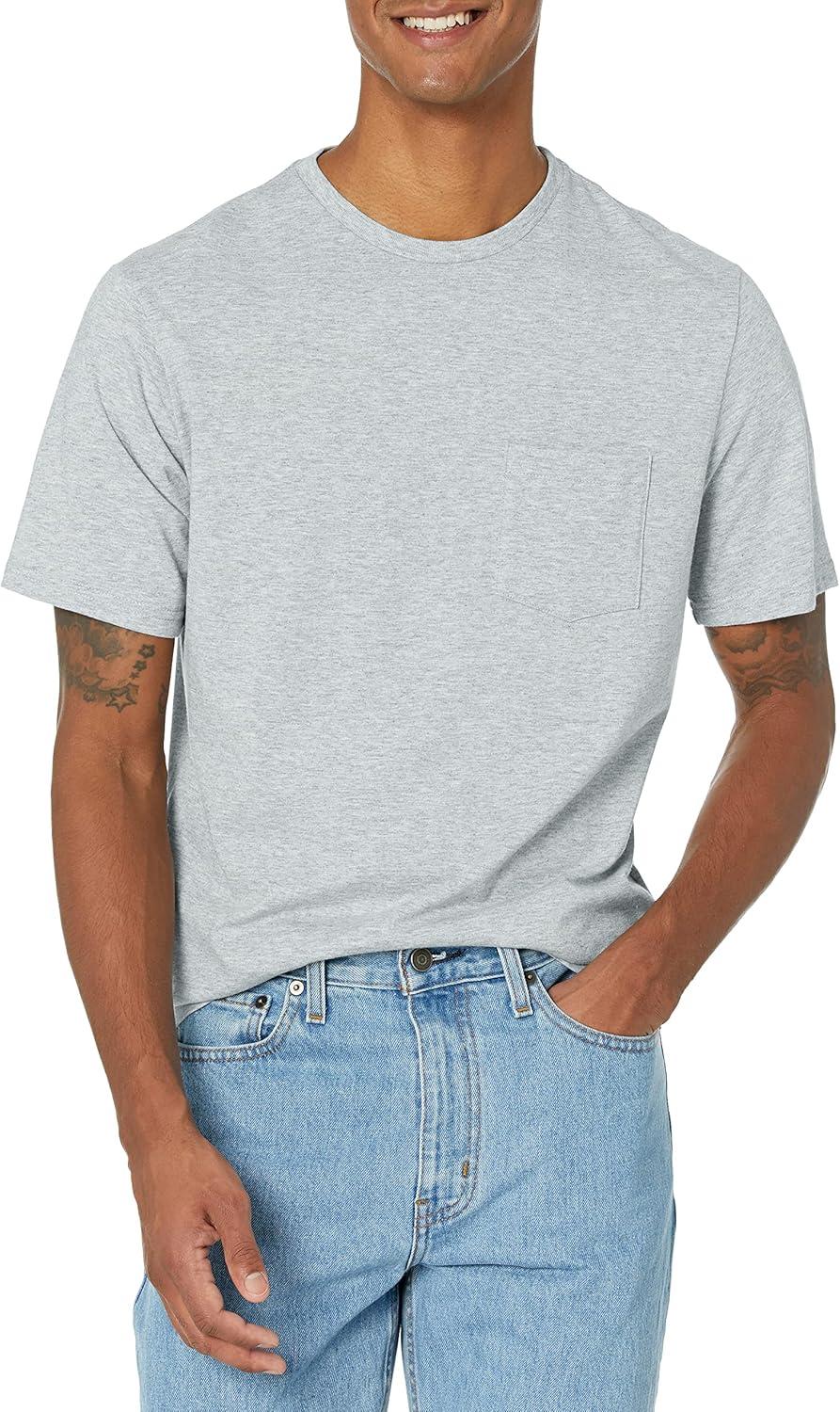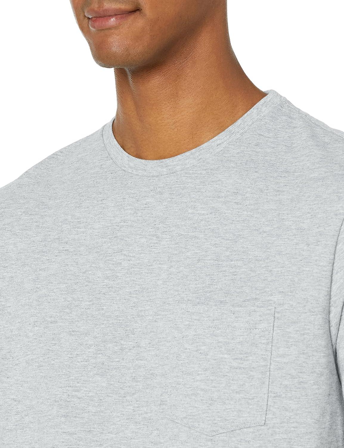 Amazon Essentials Mens T-Shirts, Regular-Fit, Short-Sleeve Crewneck Pocket, Pack of 2(Grey Heather)