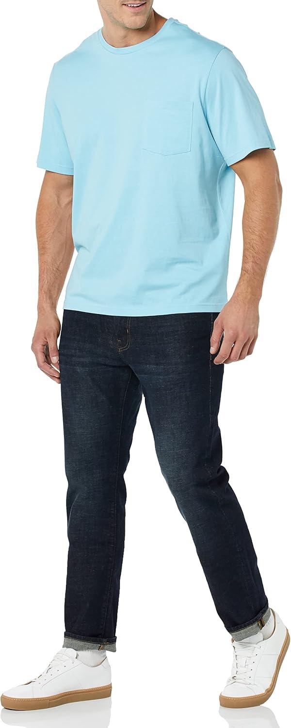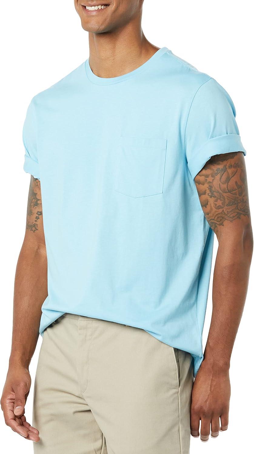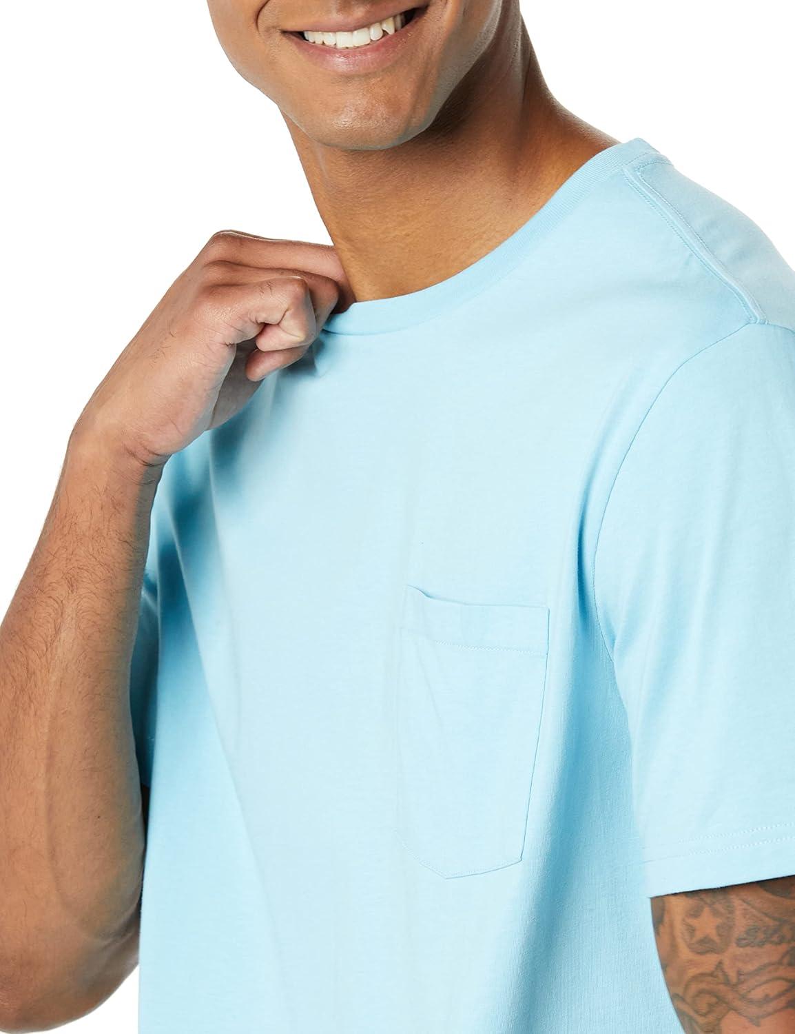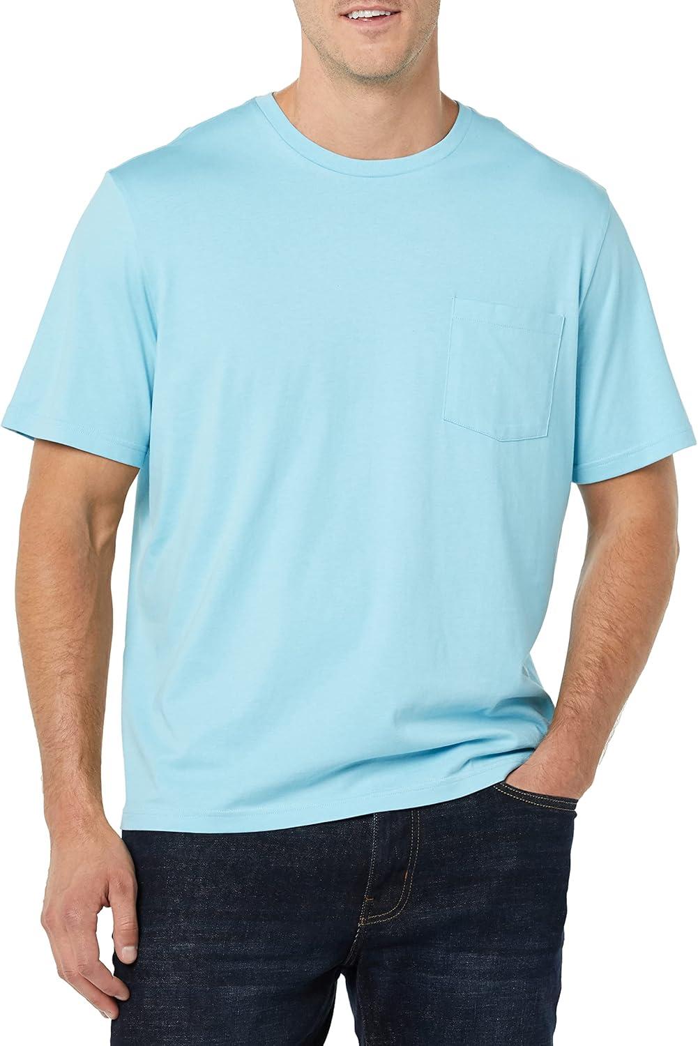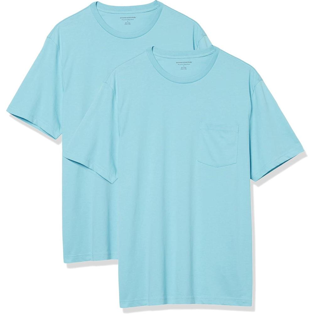 Amazon Essentials Mens T-Shirts, Regular-Fit, Short-Sleeve Crewneck Pocket, Pack of 2(Light Blue)