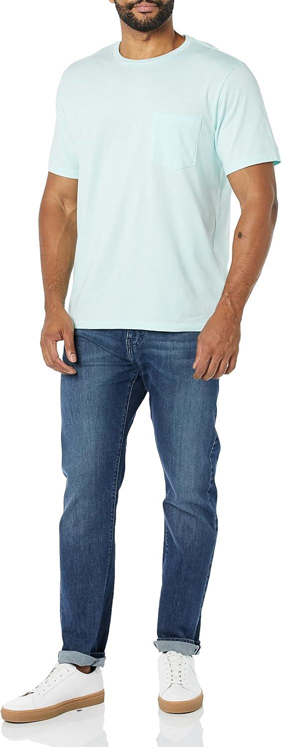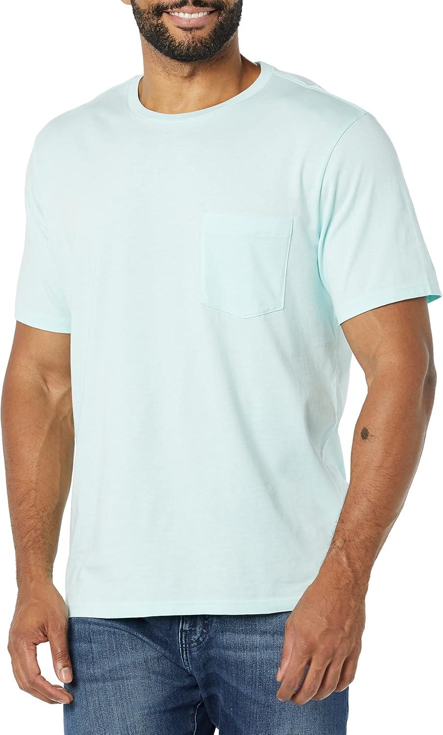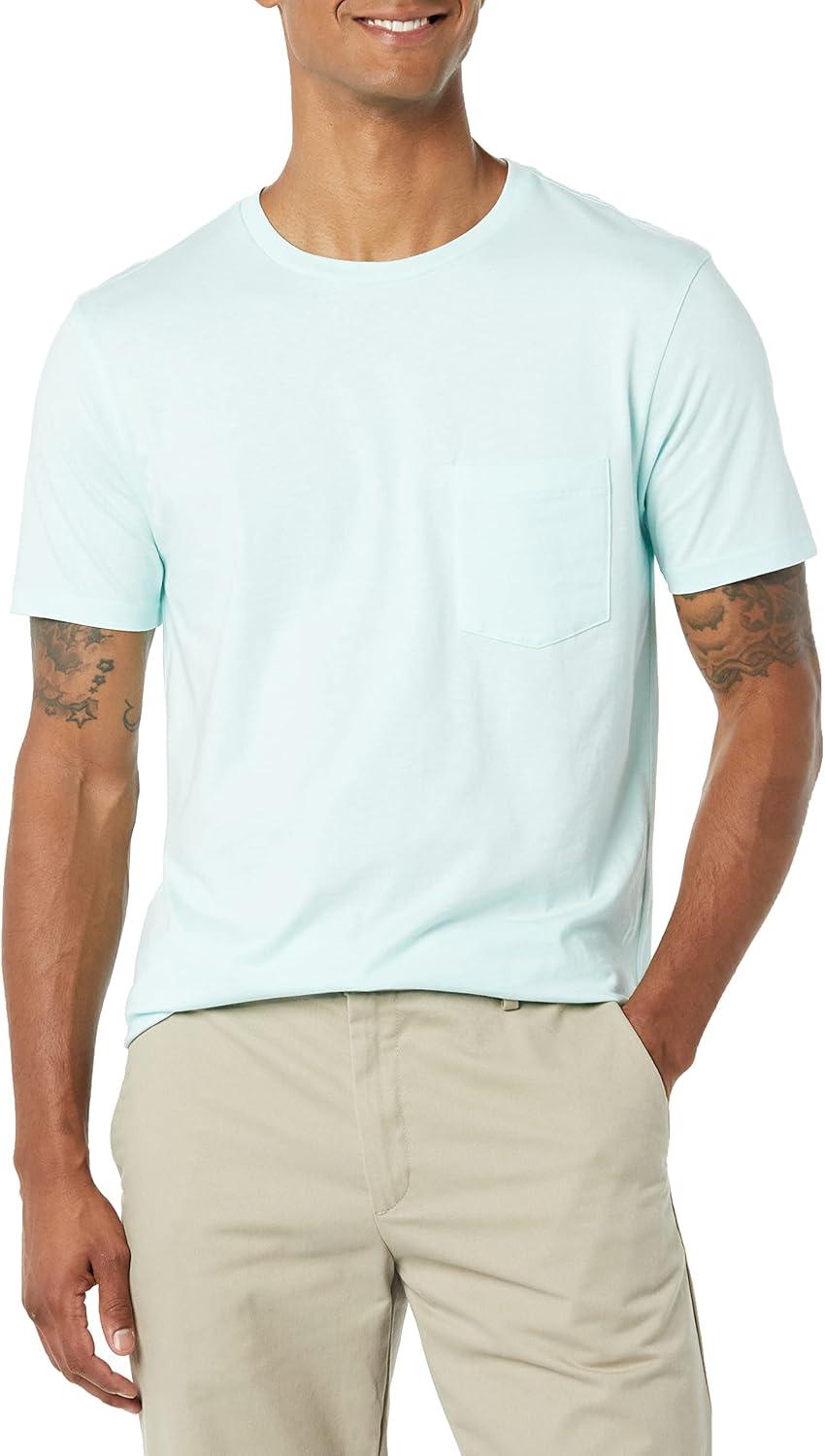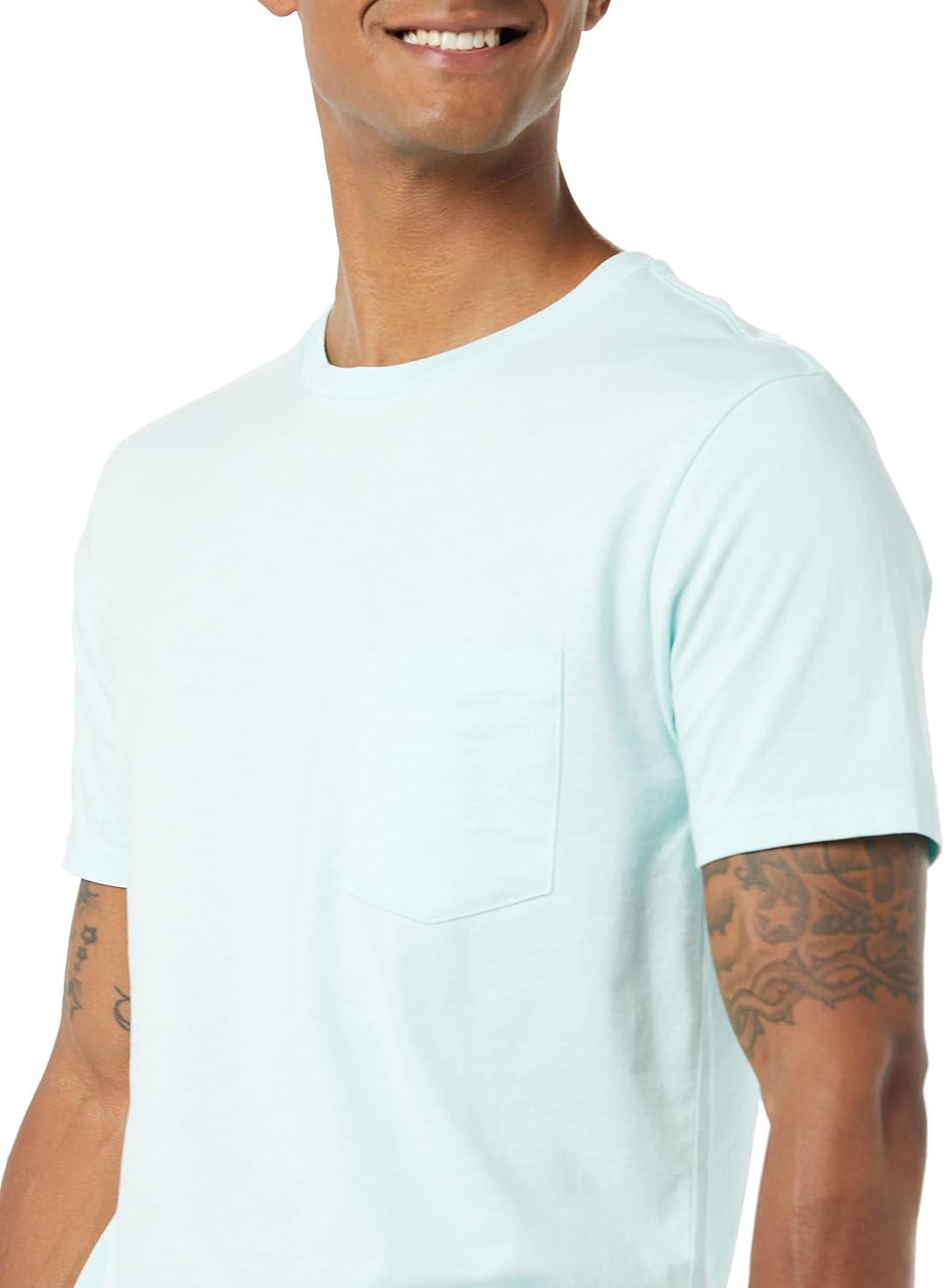 Amazon Essentials Men’s T-Shirts, Short-Sleeve Crewneck Pocket, Cotton, 2-Pack(Aqua Blue)