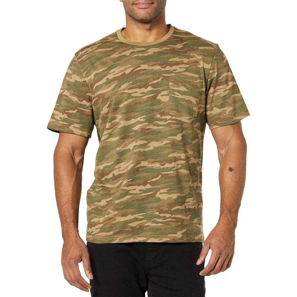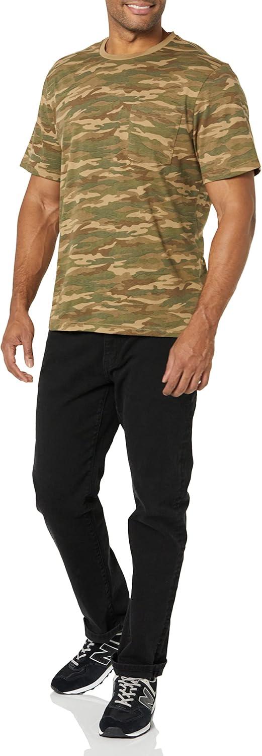 Amazon Essentials Men’s T-Shirts, Short-Sleeve Crewneck Pocket, Cotton, 2-Pack(Black/Camo Print)