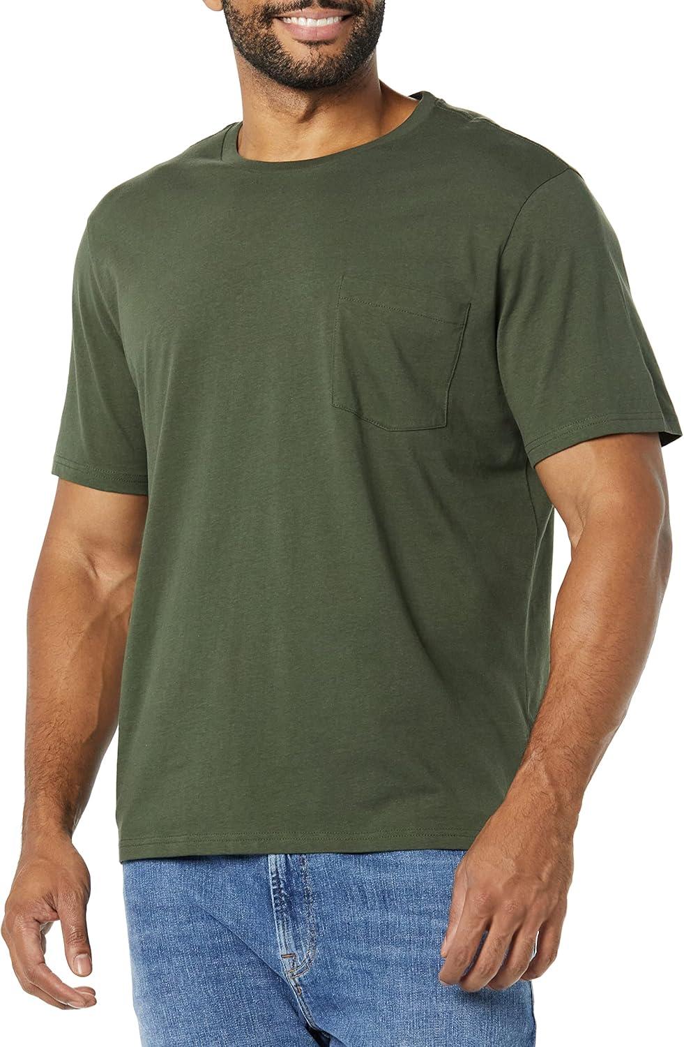 Amazon Essentials Men's T-Shirts, Short-Sleeve Crewneck Pocket, Cotton, 2-Pack(Black/Dark Olive)