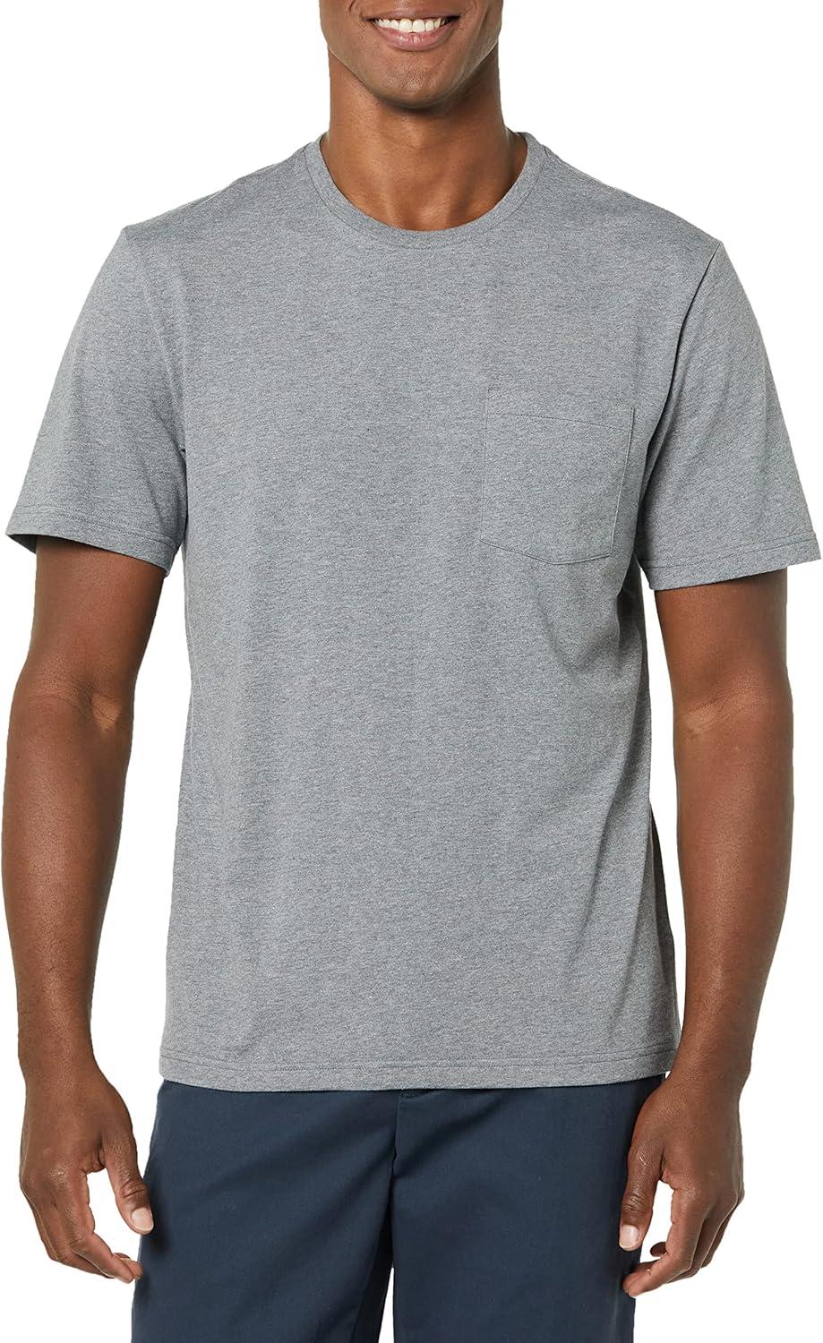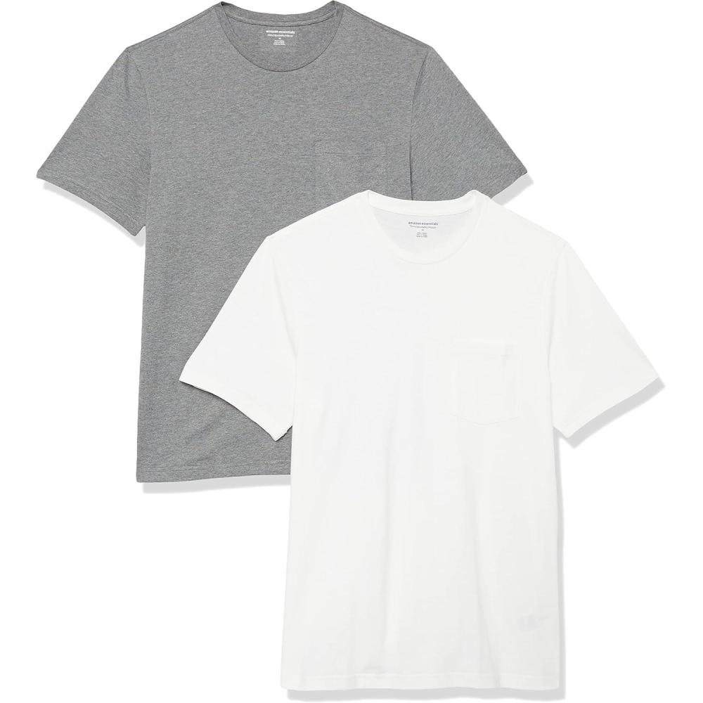 Amazon Essentials Men’s T-Shirts, Short-Sleeve Crewneck Pocket, Cotton, 2-Pack(Grey Heather/White)