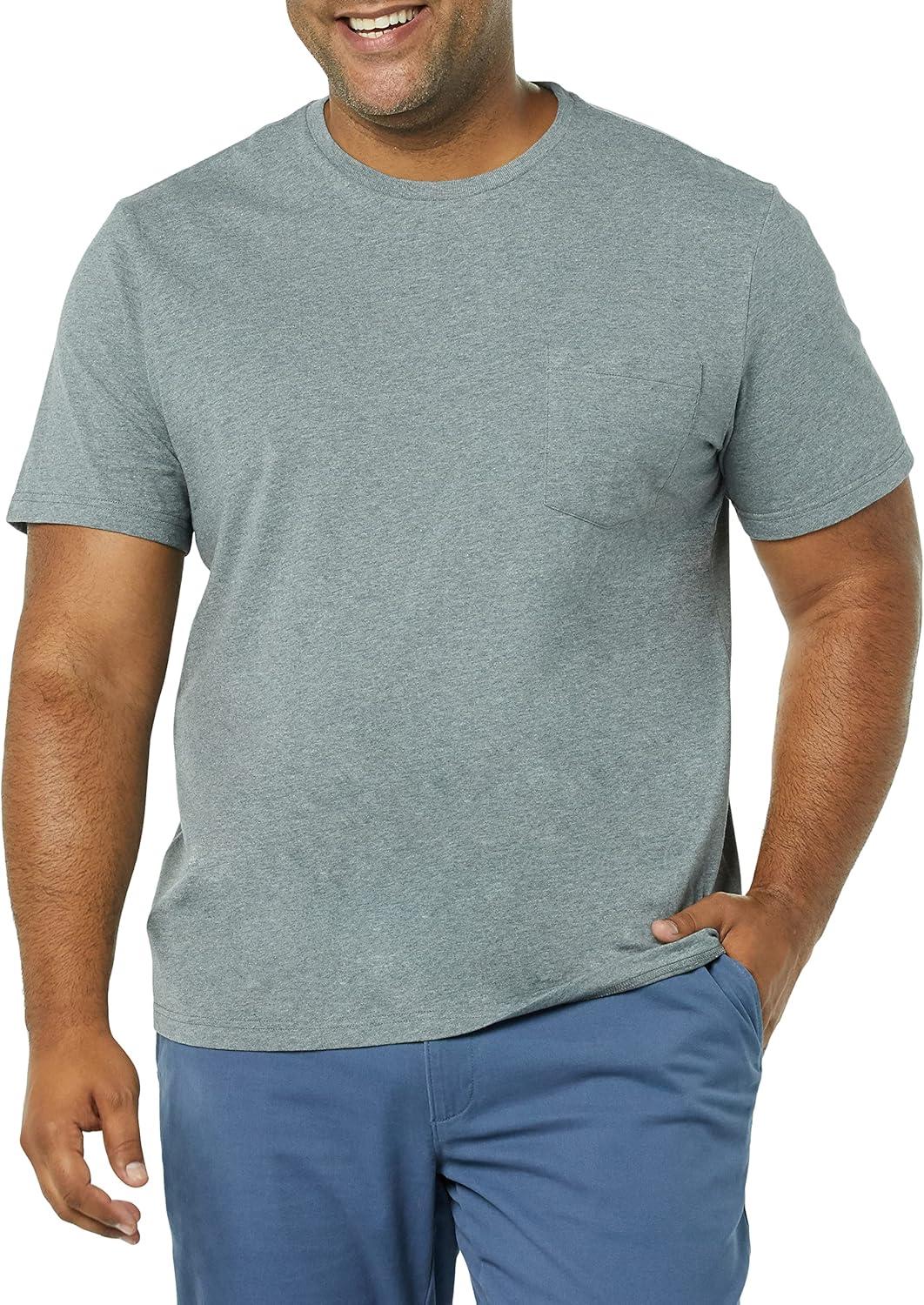 Amazon Essentials Men’s T-Shirts, Short-Sleeve Crewneck Pocket, Cotton, 2-Pack(Grey Heather Cactus)
