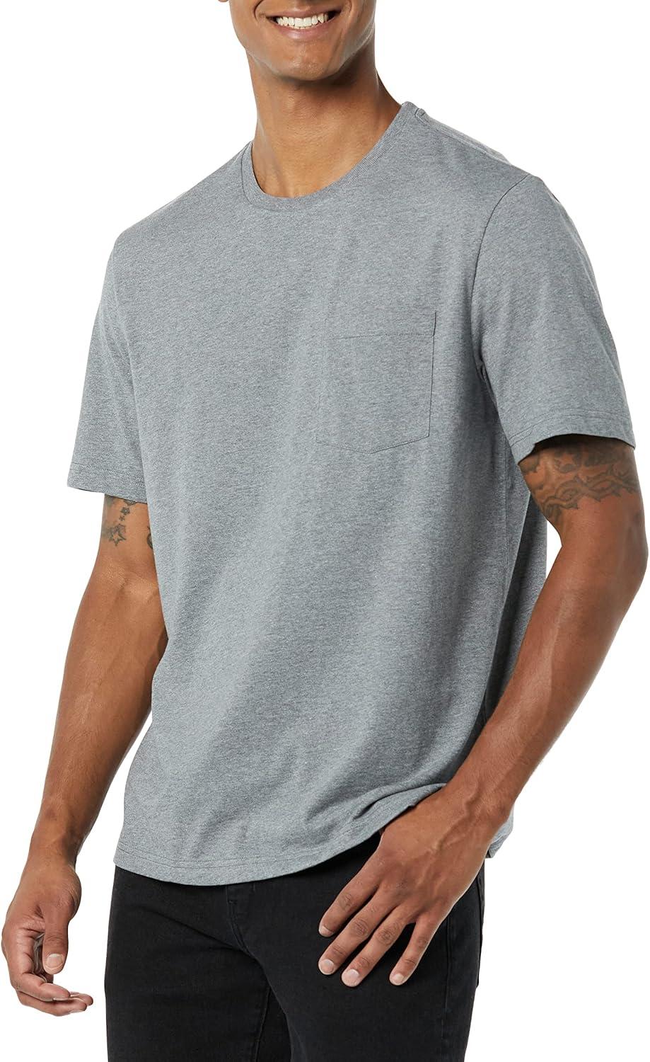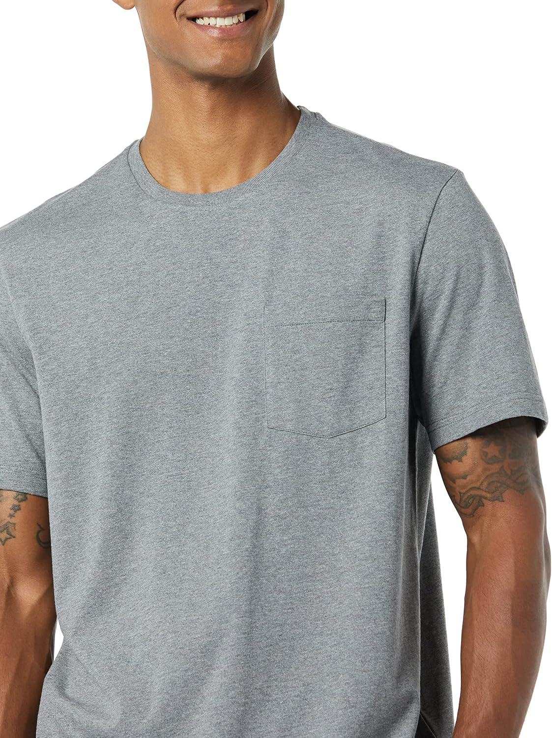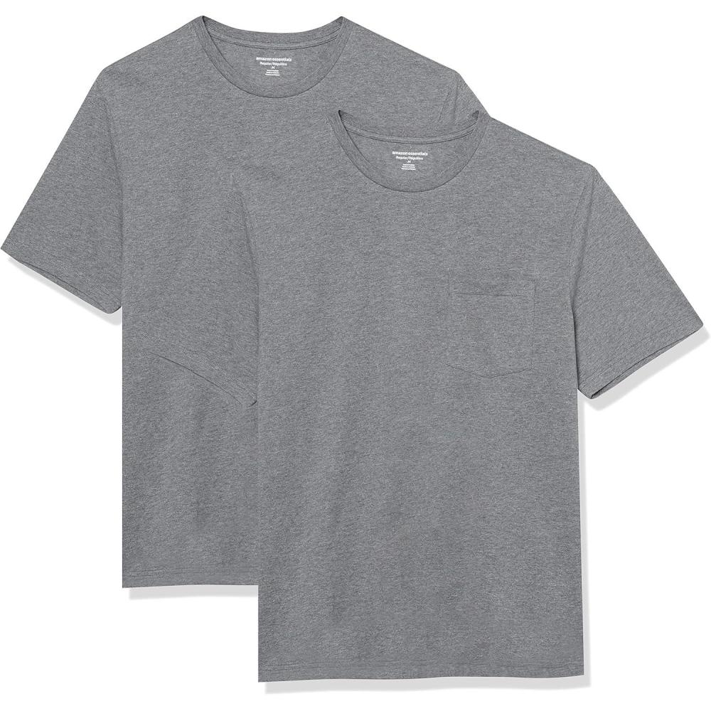 Amazon Essentials Men’s T-Shirts, Short-Sleeve Crewneck Pocket, Cotton, 2-Pack(Grey Heather)