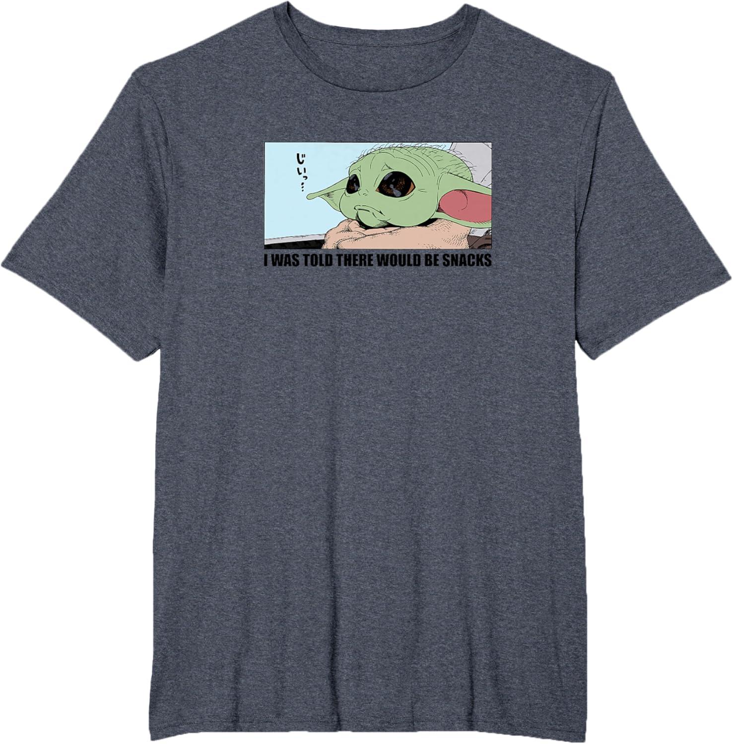Amazon Essentials Men’s The Mandalorian Sad Grogu Wants Snacks T-Shirt, Grey, Small(Heather Blue)